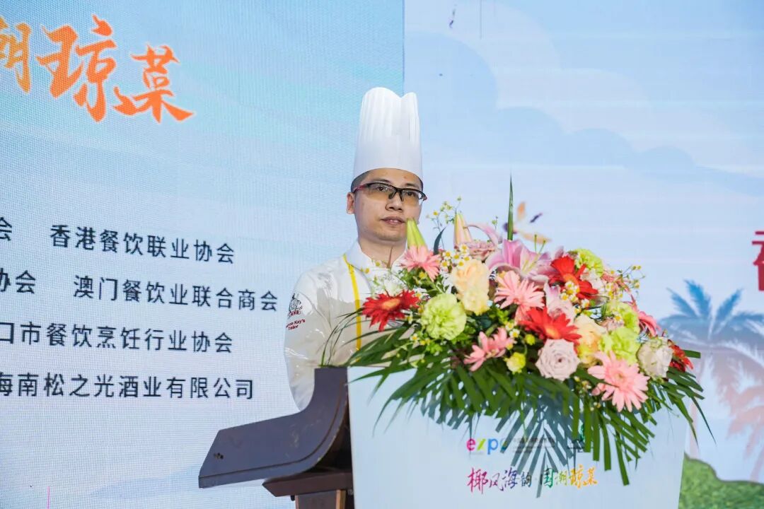 交流赛总裁判长、中国饭店协会副会长兼名厨委执行主席、广州半岛投资集团董事长利永周先生代表琼粤港澳评委宣誓,他表示本次赛事重在交流,衷心地祝愿各位选手能发挥自己的最佳水平和技能,以食为媒,在交流中品“味”悟“道”,加深琼粤港澳对彼此饮食文化的理解和认知。