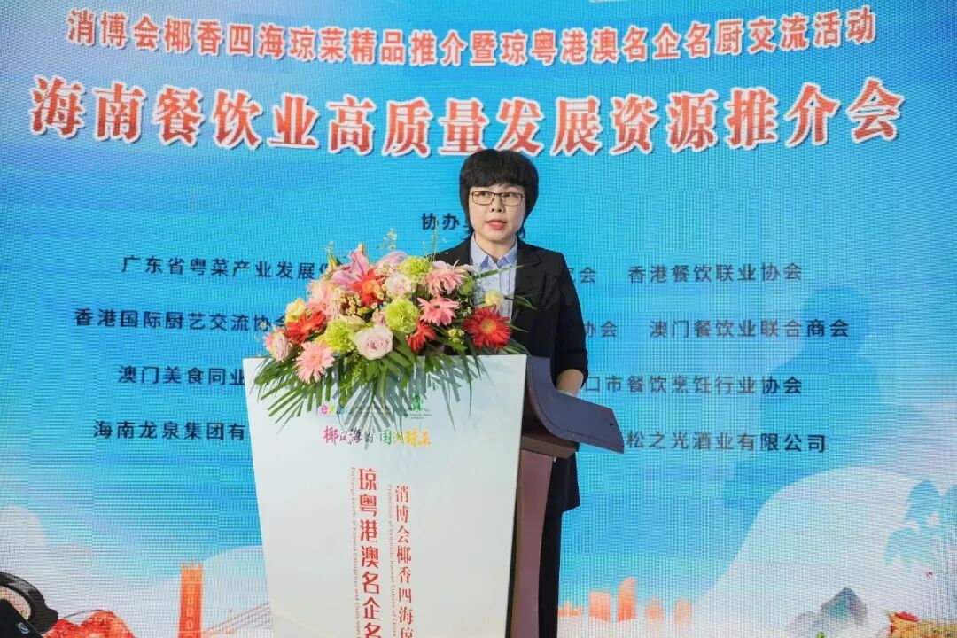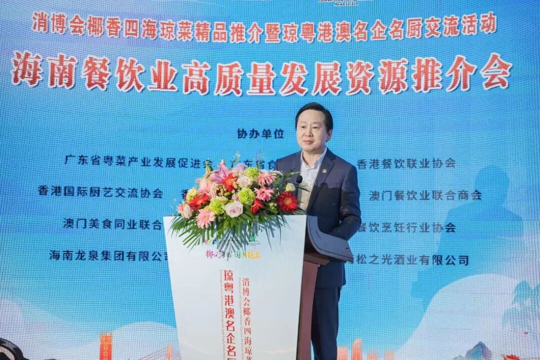 海南省商务厅党组成员、副厅长岳阳在致辞中表示,海南自由贸易港和粤港澳大湾区建设是国家战略所需,也是国家文化和旅游业发展的高地所在,琼粤港澳四地顺应文旅融合发展大势展开餐饮文化交流合作,将有助于共建世界级旅游消费目的地,就深化琼粤港澳四地餐饮方面的合作提出“进一步深化餐饮产业合作、持续提升海南厨艺水平和餐饮管理水平、共同提升旅游消费服务品质”等分享,并期待大家在自贸港发展的广阔空间里实现更多的美好愿景。