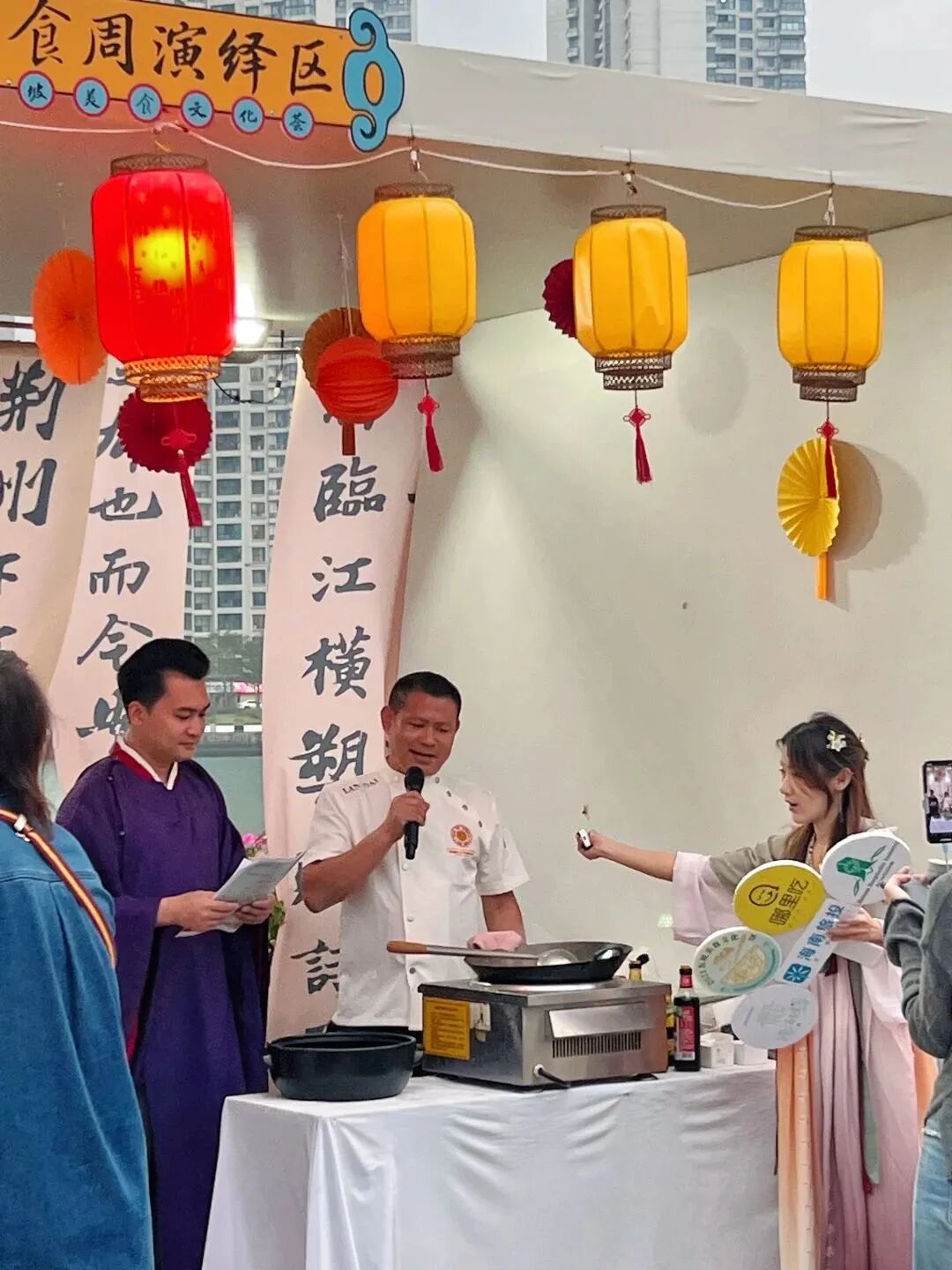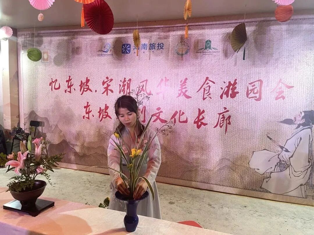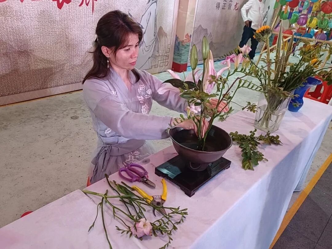 游园会现场邀请到仕女表演插花,市民跟学感受插花的艺术美学。