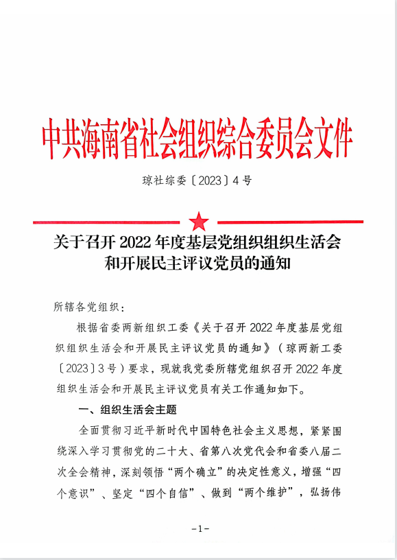 根据省委两新组织工委《关于召开2022年度基层党组织组织生活会和开展民主评议党员的通知》(琼两新工委[2023]3号)要求和海南省社会组织综合党委《关于学习宣传贯彻党的二十大精神方案的通知》精神,以海南省酒店与餐饮行业协会第四届理事会2023年主席团主席会长年会为契机,省酒餐协党支部在三亚召开2022年度基层党组织组织生活会并开展民主评议党员,省酒餐协党支部书记叶桂平主持会议。