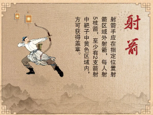 射箭源自中国古代历史悠久的一种运动,如今射箭不仅是单一的体育锻炼,我们还把它提升到一个礼的层面,融入文化,宋潮主题美食游园会将为宾客提供射箭游戏,通过射箭,让忙碌的都市人心态沉静下来,从中找到思想上的升华。