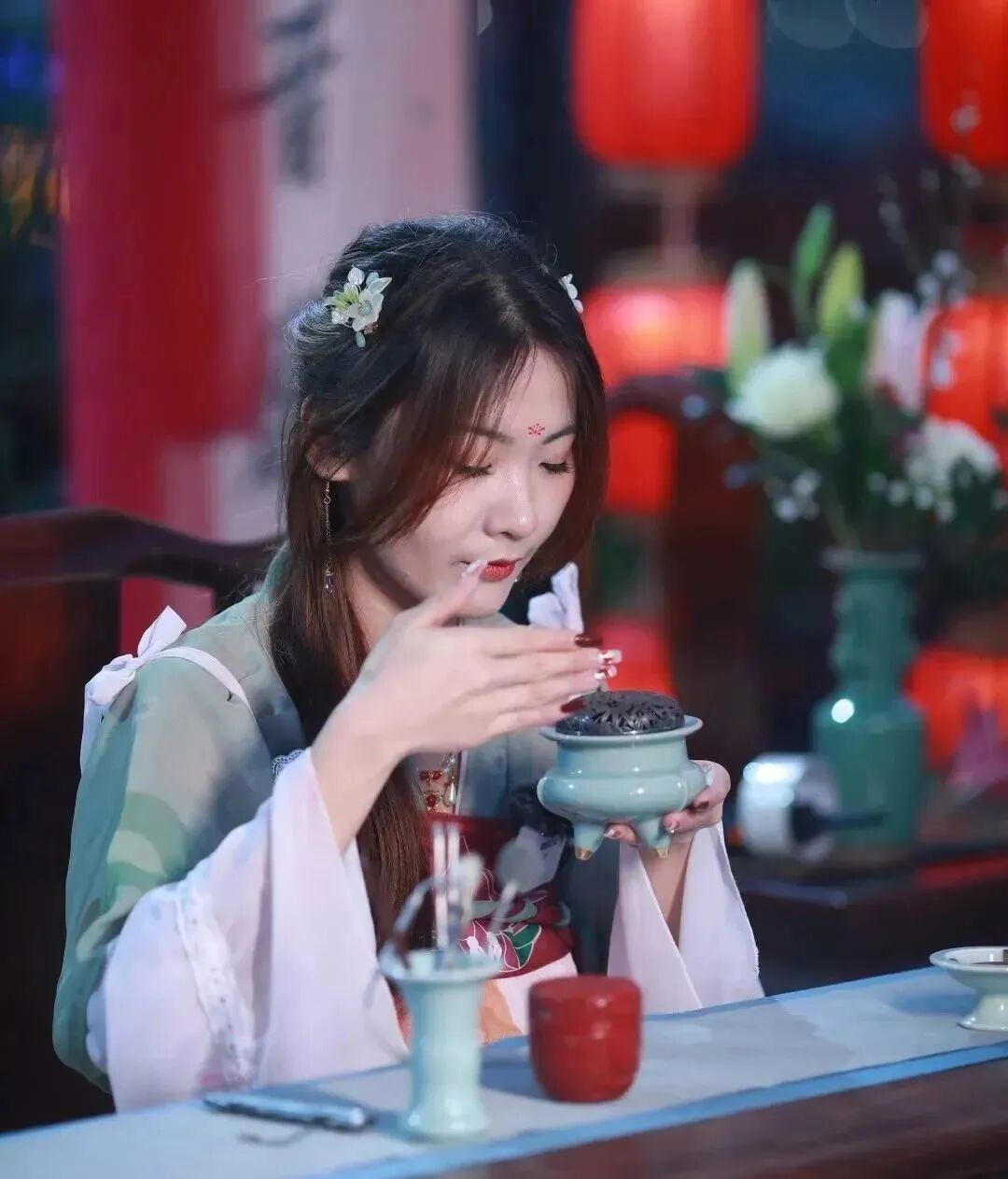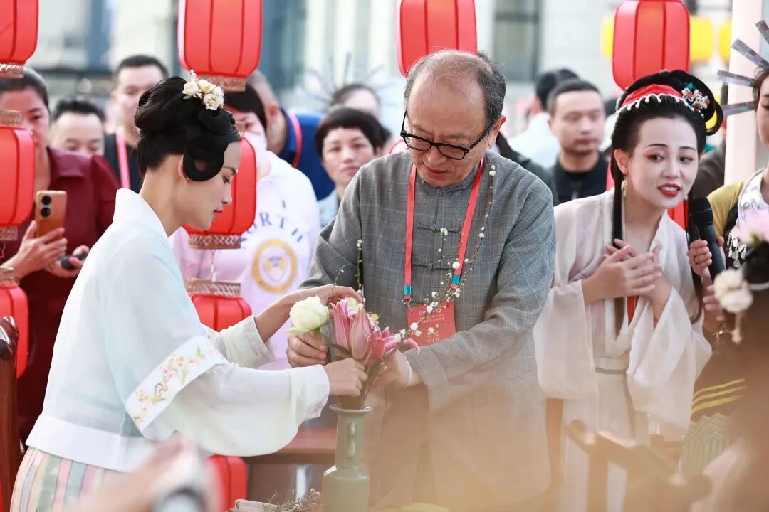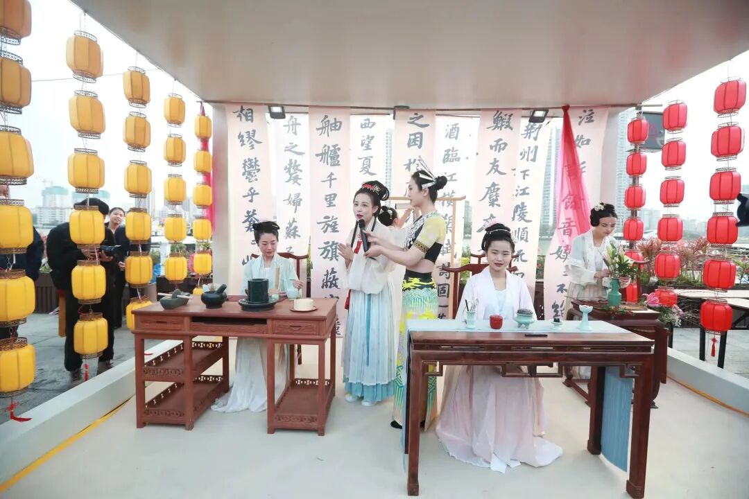 还原“四般雅事”, 再现宋人艺术境界。“烧香点茶,挂画插花,四般闲事,不宜累家”,焚香、点茶、插花、挂画四雅,被宋人合称为生活四艺,是当时文人雅士追求雅致生活的一部分,开幕式现场还原宋人吴自牧《梦粱录》中记载的宋代文人雅士生活。余音袅袅的古乐,古色古香的服装,沉浸式展现宋人的风雅意趣,让千年宋韵在新时代“流动”起来,让现场观众身临其境,完美邂逅宋韵盛宴,深度拓展宋韵文旅,在琼州大地烘托“海内外名士接踵而来,从师东坡”的文化热潮。