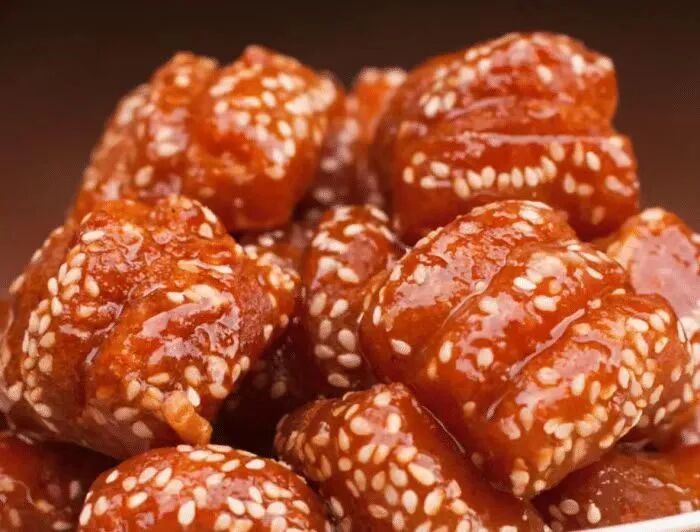 这道菜是一道甜点,徐州地方特产八大样之首,有着丰富的历史典故!相传北宋年间,苏东坡在徐州任知州时,与云龙山上的隐士张山人过往从甚密,常常诗酒相会。一天苏东坡与张山人在放鹤亭上饮酒赋诗,苏东坡抽出一把新得的宝刀,在饮鹤泉井栏旁的青石上试刀,连砍三刀,在大青石上留下了三道深深的刀痕,苏东坡十分高兴。正在这时,侍从送来茶食糕点,有一种新做的蜜制糕点十分可口,只是尚无名称,众友人请苏东坡为点心起名,他见糕点表面亦有三道浮切的刀痕,随口答:“蜜三刀是也。”