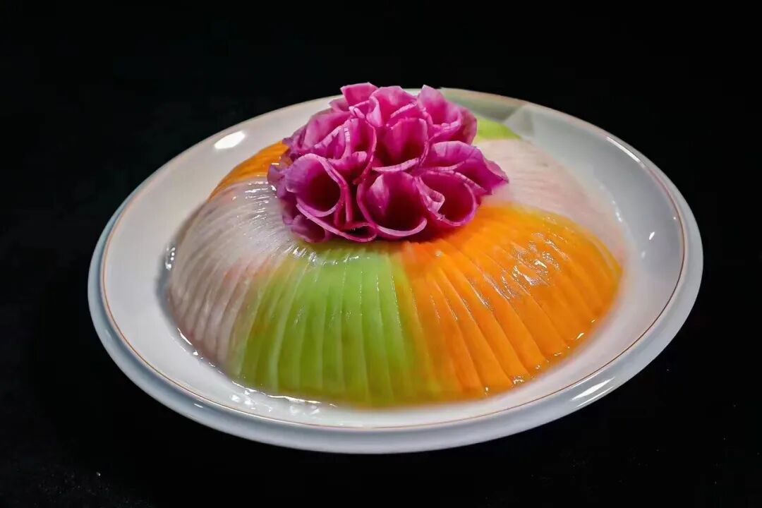 苏轼对素食颇有研究,其有诗曰:“秋来霜露满园东,芦菔生儿芥生孙。我与何憎同一饱,不知何苦食鸡豚。”在他看来,蔬菜比鸡鸭鱼肉还要味美。东坡素什锦是一道结合苏轼素食理念的色香味俱全的传统名肴,通常使用芹菜、胡萝卜丝、笋丝等多种蔬菜制作而成,含有丰富的蛋白质、人体必需氨基酸、钙、磷、铁等人体需要的矿物质,可均衡人体膳食,从而达到延缓衰老的效果。