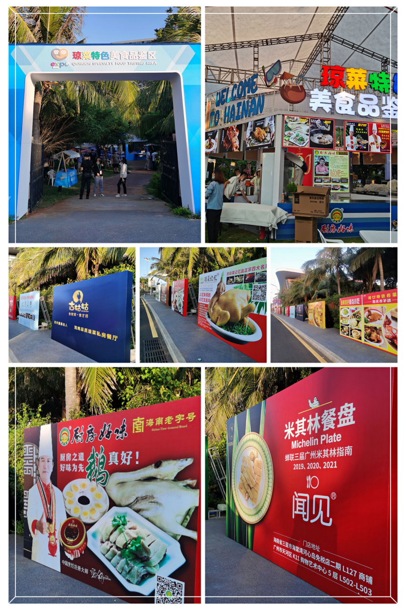琼菜美食齐汇聚,现场逛吃嗨不停。琼菜特色美食品鉴服务区主打特色琼菜精品。现场有海南琼菜王:糟粕醋海鲜窝、椰奶咖喱鸡、海南椰汁糕等;闻见·中国海南菜:金奖白切文昌鸡、海南腌粉等;原味主张椰子鸡汤:椰子鸡、椰子饭、椰子糕等;古姑姑私房菜:古姑姑椰子鸡、古姑姑招牌野菜豆腐、鲍鱼花胶焖文昌鸡等;厨房好味:白切白莲鹅、白莲鹅套饭、瑞溪粽子等;琼菜记忆:白切文昌鸡、红烧东坡肉套餐、文昌鸡套餐等;海南三厨新海府:.脆皮香茅鸽、海南鲜椰子包、黑猪肉烧饼等;皇隆阁餐厅:榴莲文昌鸡捞饭、榴莲芝士烤带子等美食。