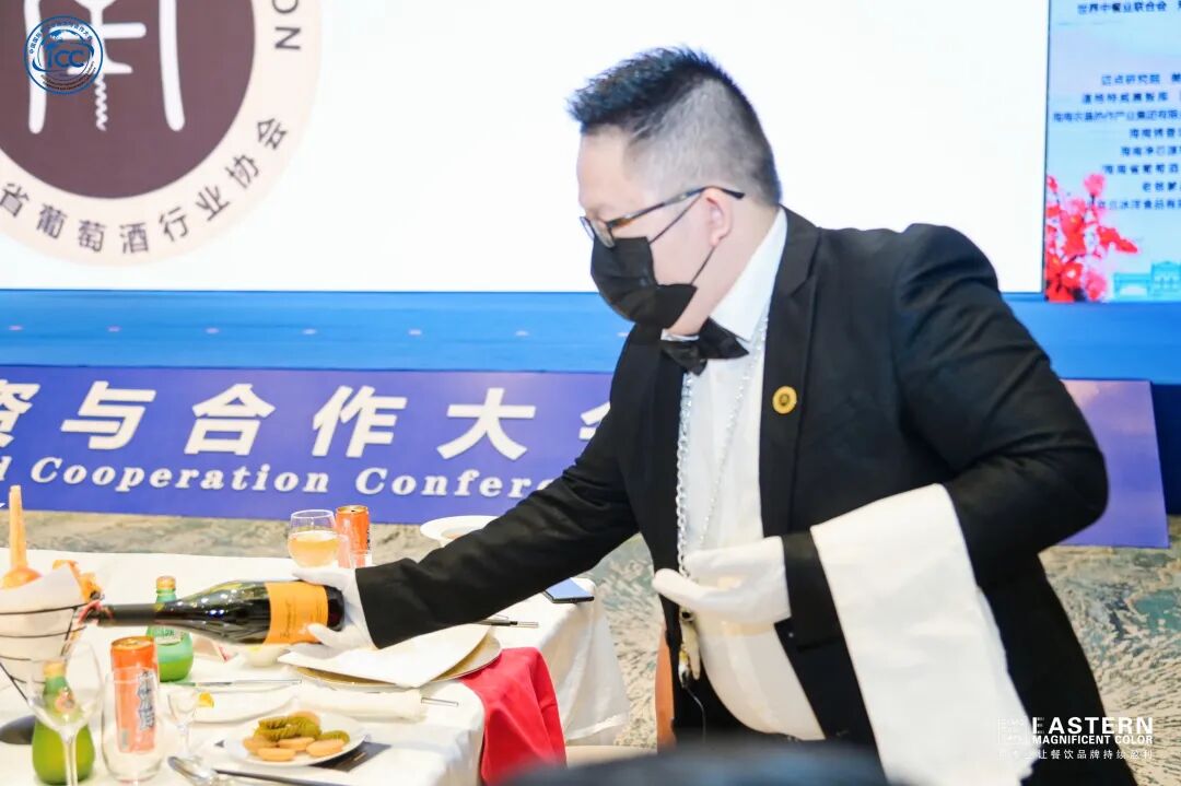 为促进我省餐饮行业与葡萄酒行业融合发展,在餐饮行业不断普及葡萄酒专业知识,以葡萄酒侍酒师培养餐饮行业高端服务专业人才,在大会晚宴上,宏丰泰酒业限公司董事长、海南省葡萄酒行业协会执行会长郑小冬代表海南省葡萄酒行业协会与海南省酒店与餐饮行业协会签署战略合作协议。晚宴上还安排了海南省葡萄酒行业协会的侍酒师们作侍酒师形象和专业服务展示。