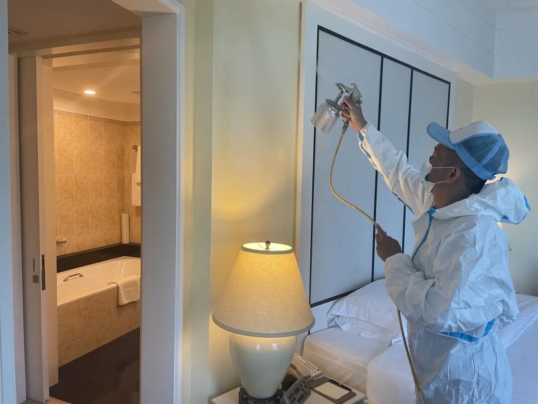 使用净芯源净化液对酒店房间进行全方位的空气治理,做到除霉、防霉、除异味多方位治理为一体。