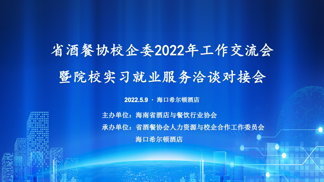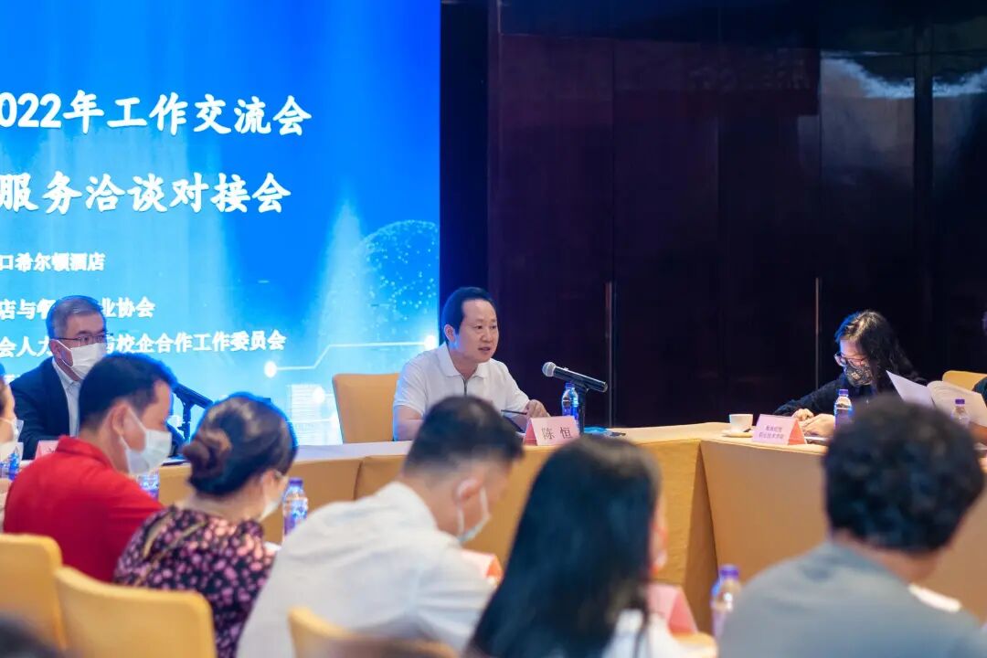 为做好行业人力资源服务,搭建校企交流平台,高效推进供求合作,2022年5月9日下午,由海南省酒店与餐饮行业协会主办,海南省酒店与餐饮行业协会人力资源与校企合作工作委员会、海口希尔顿酒店承办的“海南省酒店与餐饮行业协会校企委2022年工作交流会暨院校实习就业服务洽谈对接会”在海口希尔顿酒店举行。(参会单位名单附后)