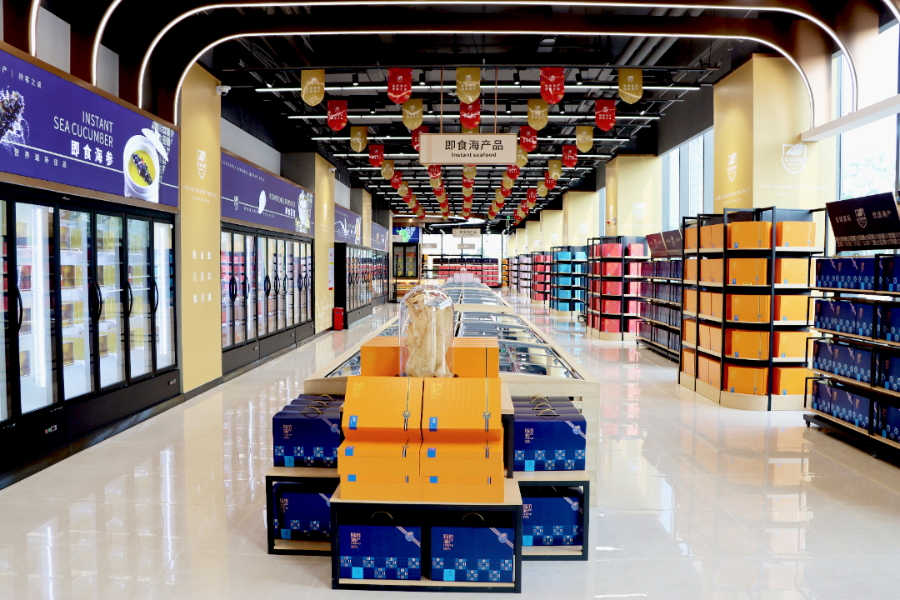 陆侨国际海产品超市,是全国首创国际海产品超市,涵盖即食海产品、海产干货、海产冻品、进口肉类、跨境新零售等多品类商品区。