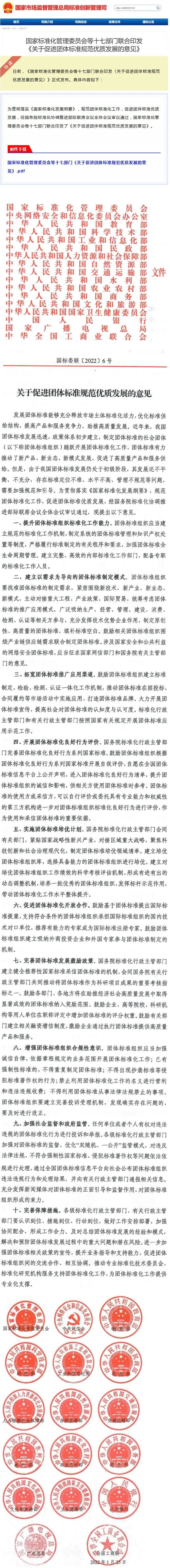 日前,《国家标准化管理委员会等十七部门联合印发〈关于促进团体标准规范优质发展的意见〉》正式发布。具体内容如下:
