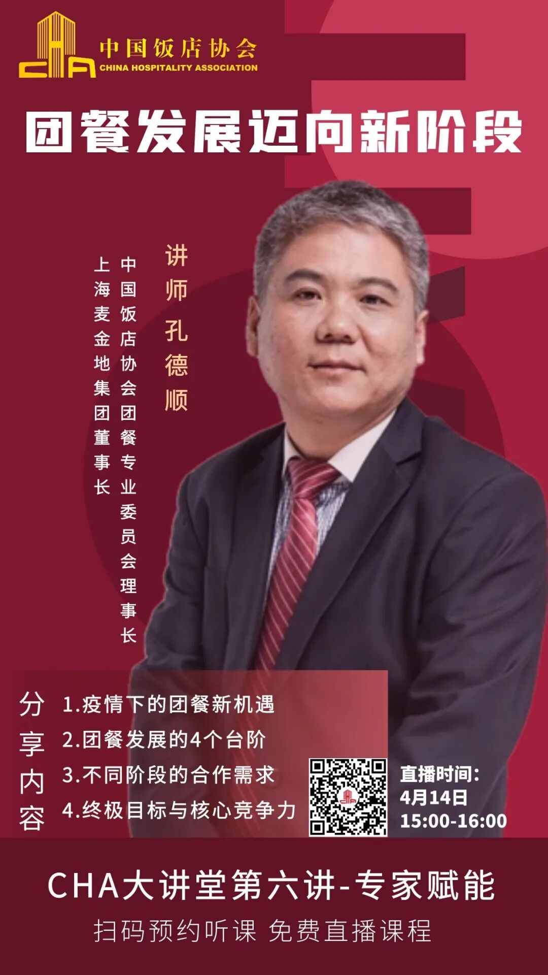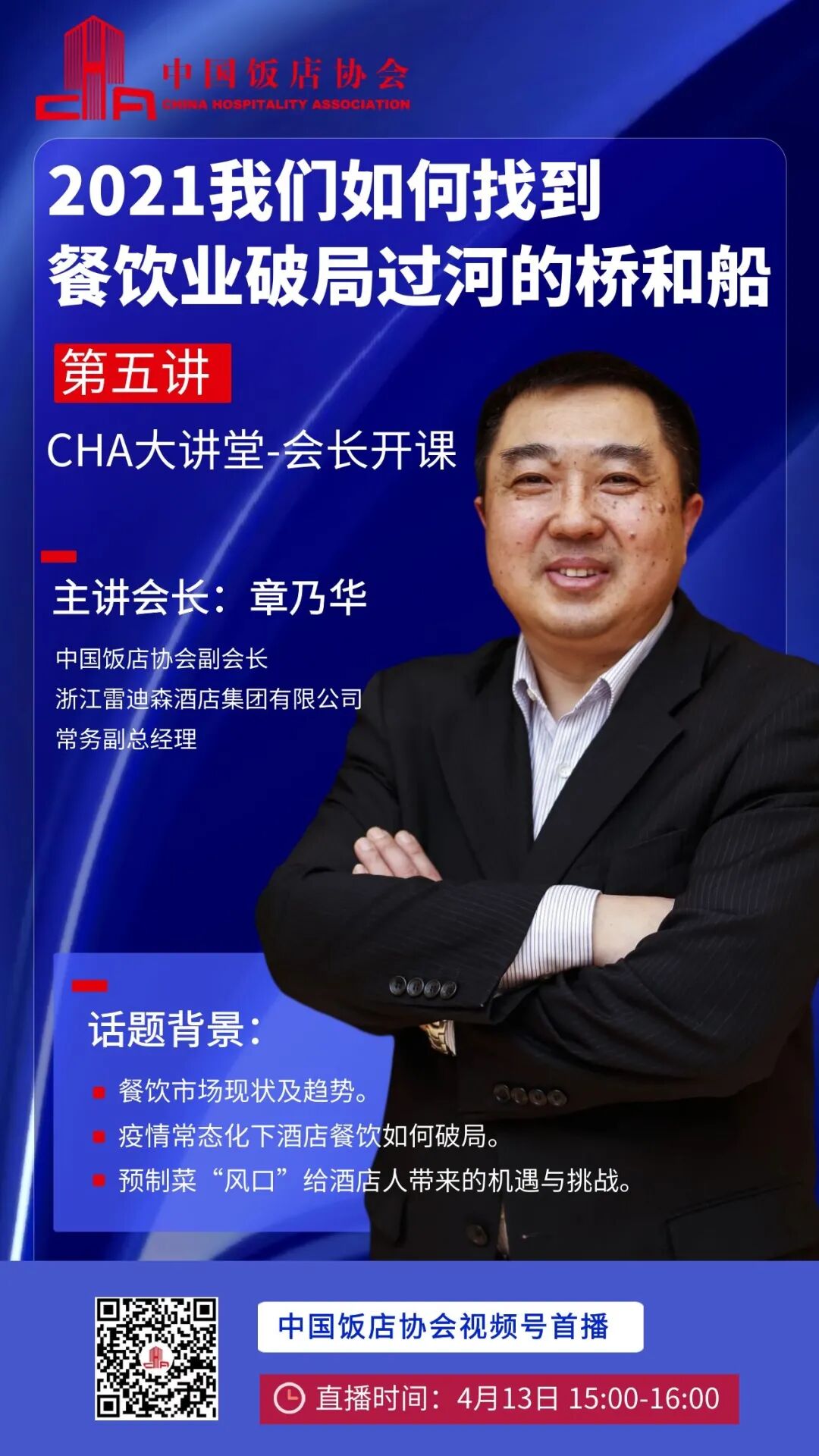 为促进行业稳健恢复、实现高质量创新发展,中国饭店协会精心策划“CHA大讲堂”系列公开课。作为协会教育中心的线上品牌,“会长开课”、“专家赋能”两大板块内容,将重点聚焦疫情下行业新市场、新模式、新工具,提振行业信心,助力企业开源节流,为深受疫情影响的住宿餐饮企业赋能。