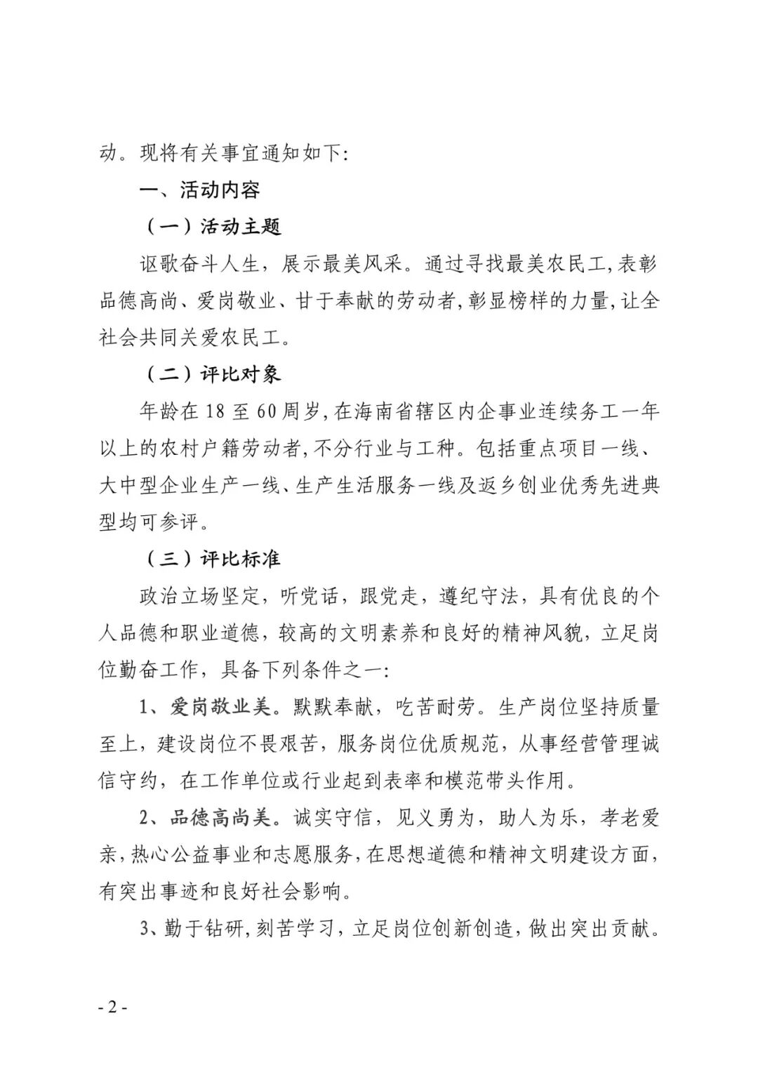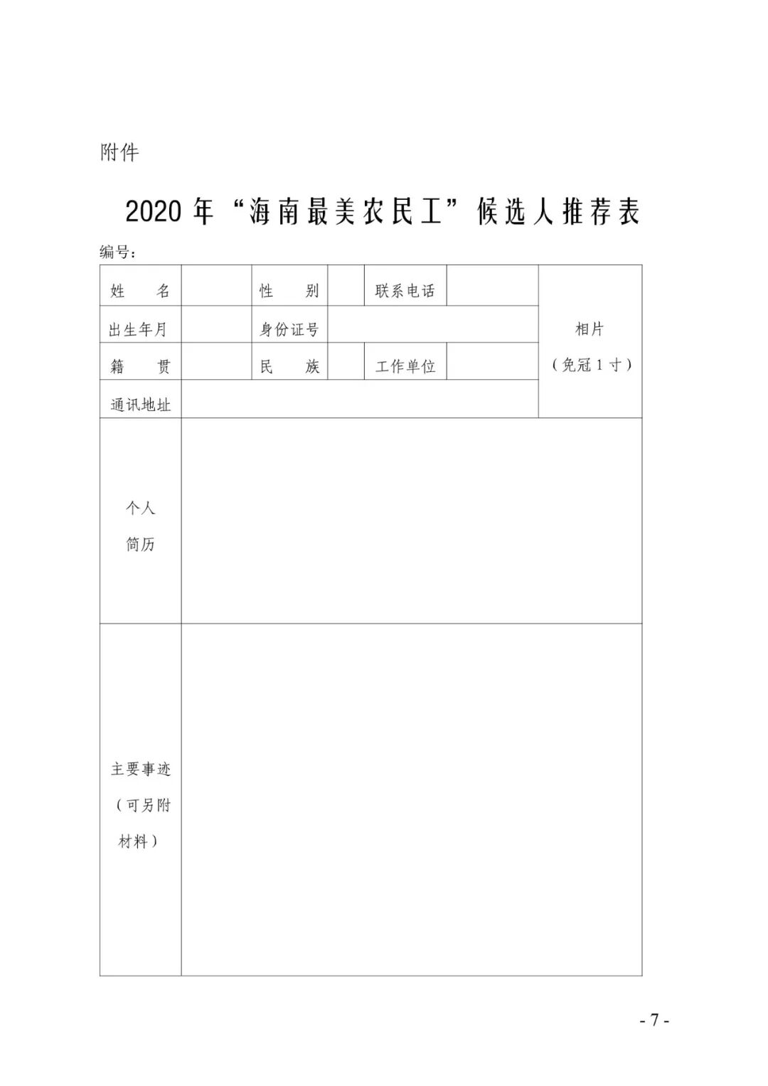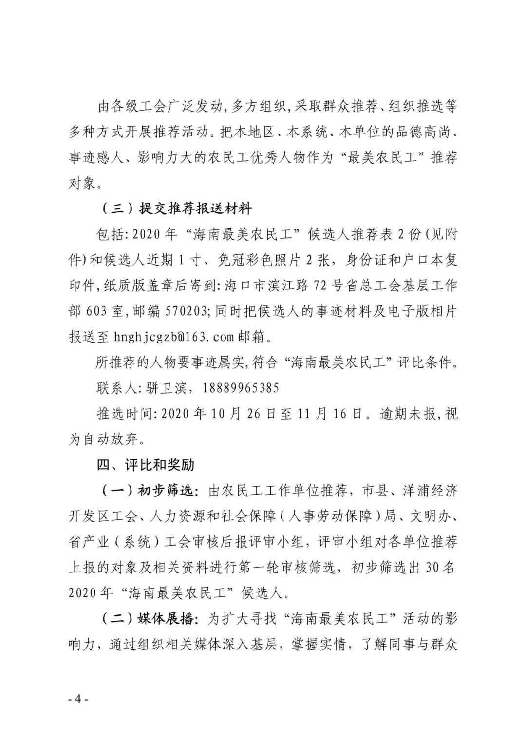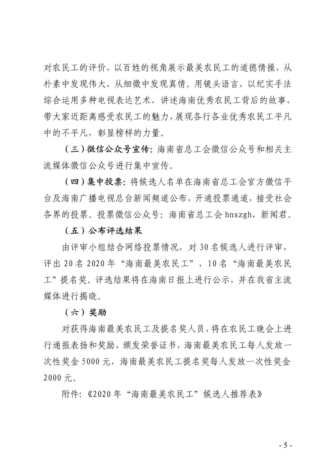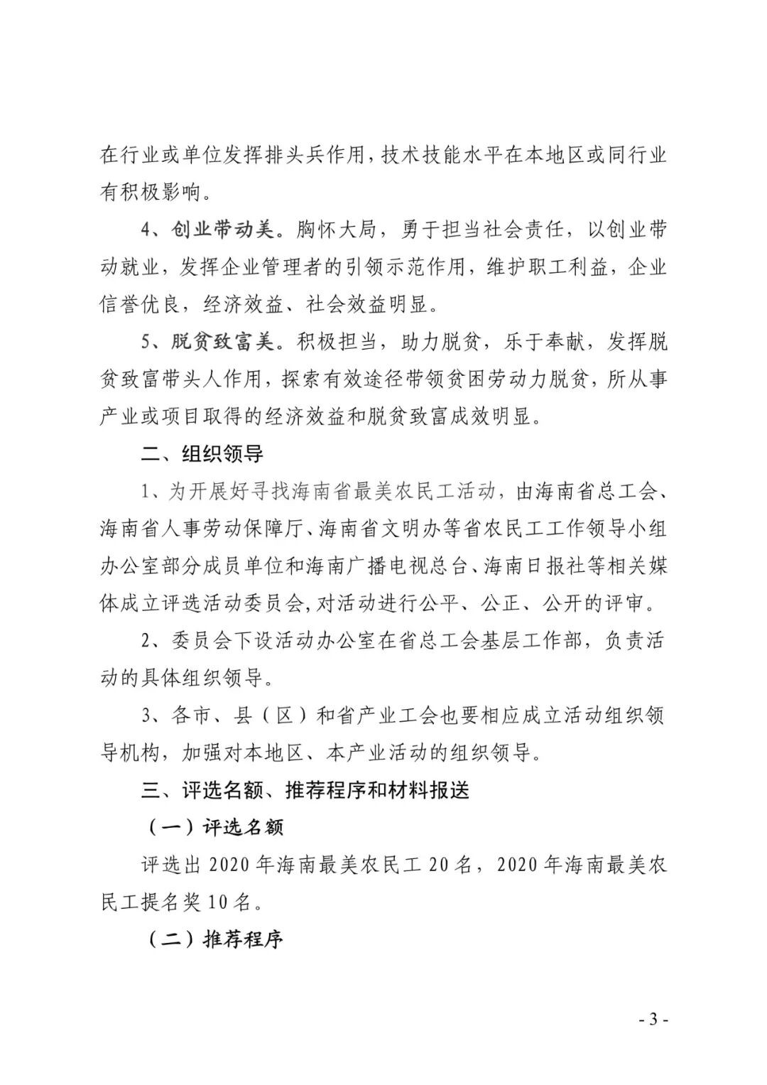 关于开展寻找2020年“海南最美农民工” 活动的通知