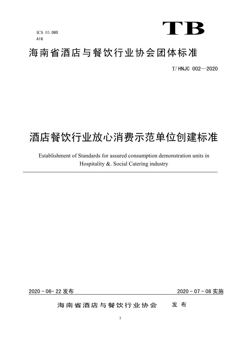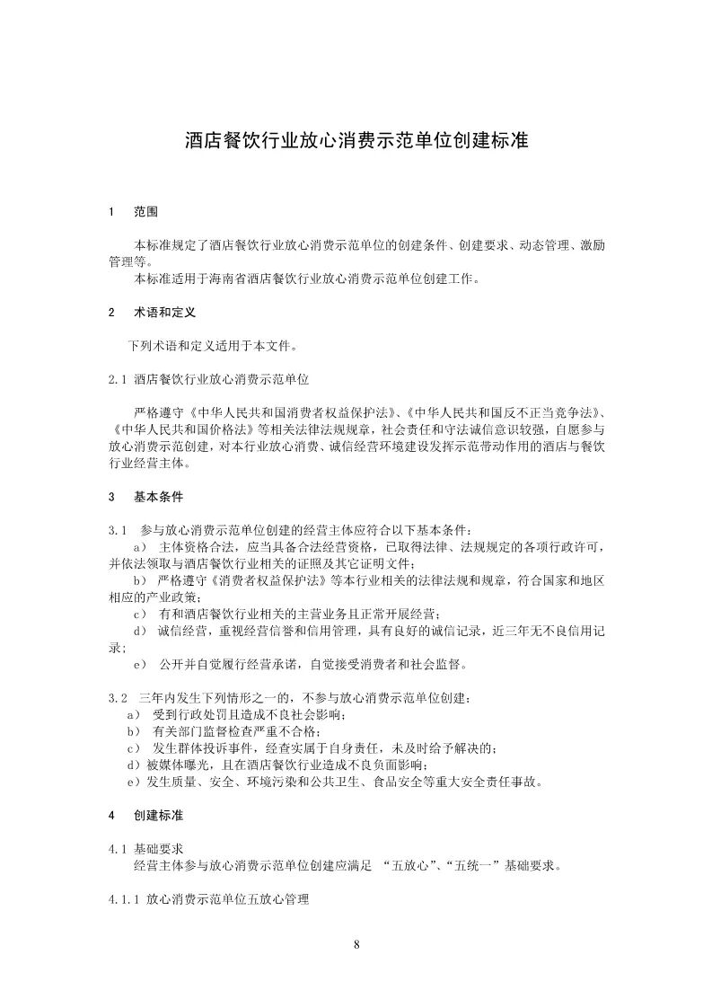 点击蓝字关注我们为做好海南省《酒店餐饮行业放心消费示范单位创建标准》(T/ HN...