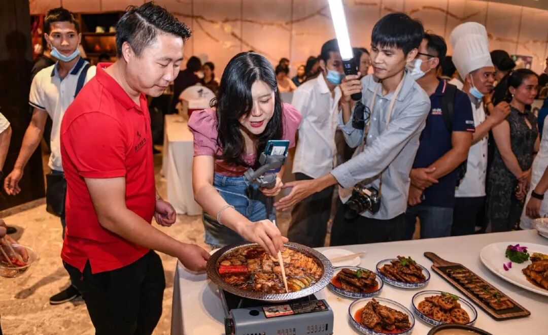 启动仪式上,海口市人民政府副市长沈继奔作了讲话,海口市商务局党组书记董孟清代表主办单位致欢迎辞,海南省酒店与餐饮行业协会执行会长陈恒代表承办单位介绍了活动整体情况。现场组织了海口上百家品牌酒店与餐饮企业当家菜展示及特色美食免费品尝,并由“网易+哪里吃”双平台直播带货,以“云直播、云餐饮”为切入点,直观展示推介当家菜肴形象,直播销售“代金券”、“餐饮优惠套餐”,吸引了上万名市民游客参与关注和互动,大家热情高涨、惊喜不断。