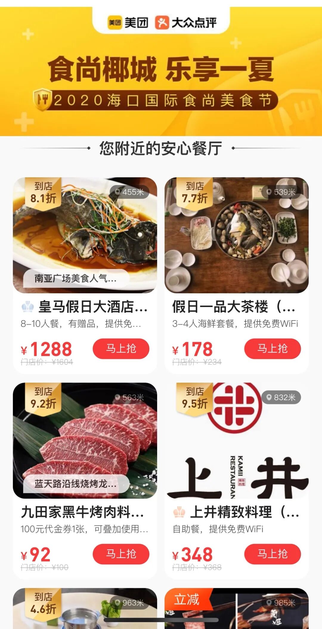 2020海口国际食尚美食消费季活动在为期两个多月的时间内,策划了“商超美食节、品牌餐饮美食节、品牌酒店餐饮美食节”三大版块美食节,联合进行线上线下促销。目前累计已有海口丽思卡尔顿酒店、海口朗廷酒店、海口香格里拉大酒店、海南君华海逸酒店、欢乐海岸美食联盟、拾味馆、豪约客、宴琼州、竹村鲜道等60+品牌餐饮企业、200+门店以及30+品牌酒店和海口友谊阳光城、海口N次方公园等5家大型综合商业广场的餐饮业态参与。其中品牌餐饮美食节、品牌酒店餐饮美食节将于本月19日开展,商超美食节于8月下旬开展,每个版块的美食节活动为期一个月。