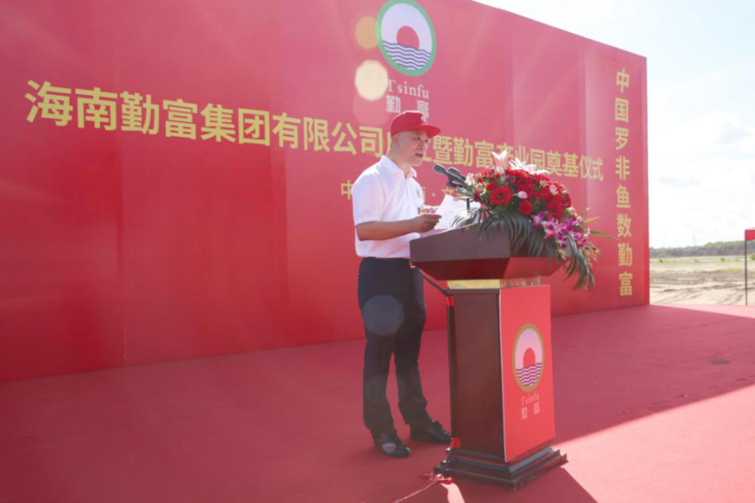海南省农业农村厅副厅长刘忠松先生在致辞中用详细地数据,说明了我省罗非鱼产业的发展现状,高度评价了周勤富董事长在我省深耕罗非鱼产业35年所做出的显著业绩和贡献。他预祝奠基活动举办取得圆满成功!衷心祝愿勤富产业园早日竣工投产!祝愿勤富集团公司做大做强!