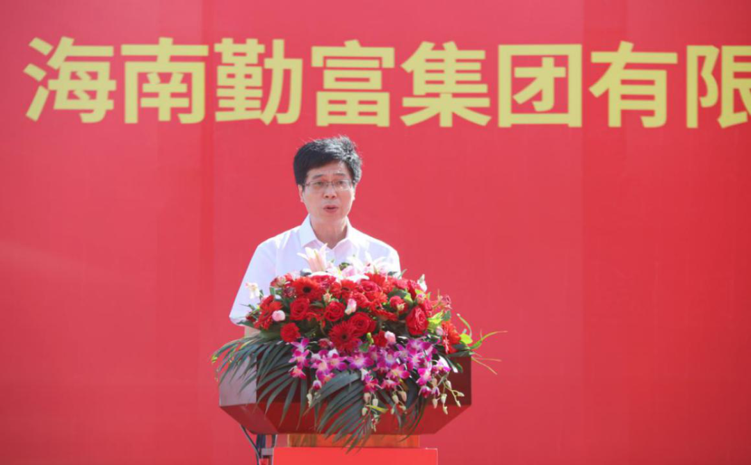 首先,海南勤富集团有限公司董事长周勤富先生致辞。周董事长简要介绍了勤富公司发展现状,详细说明了勤富产业园产业布局的情况,给大家描绘了勤富集团未来的美好发展愿景。