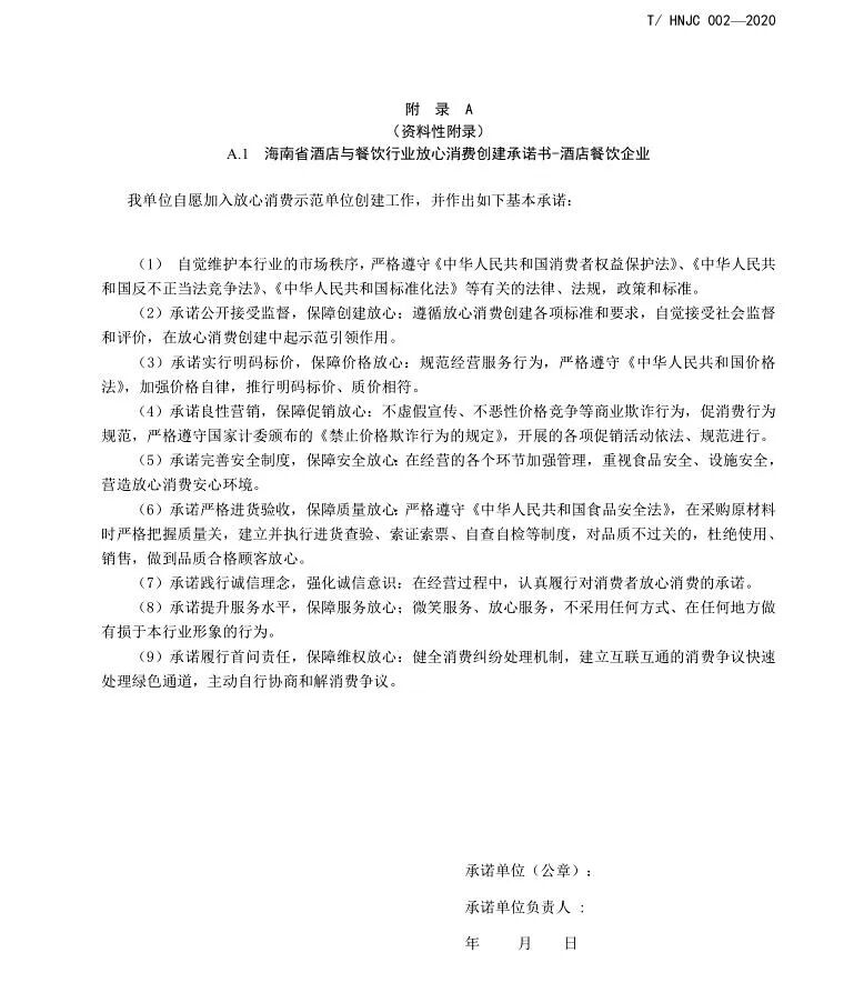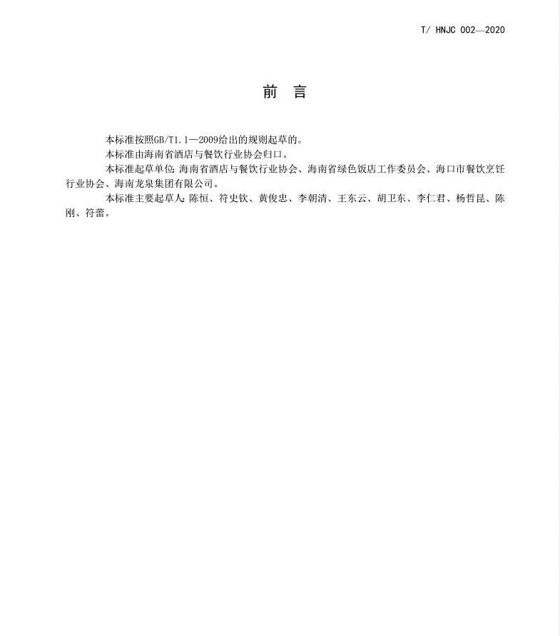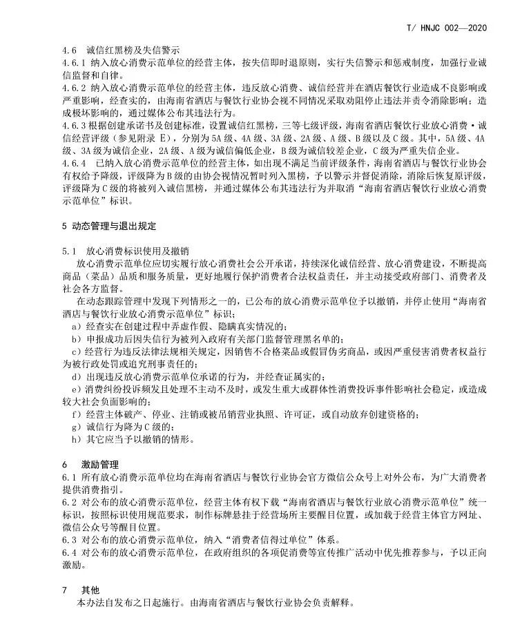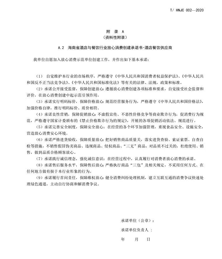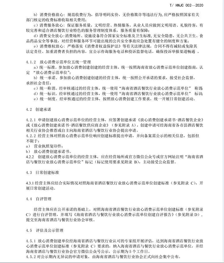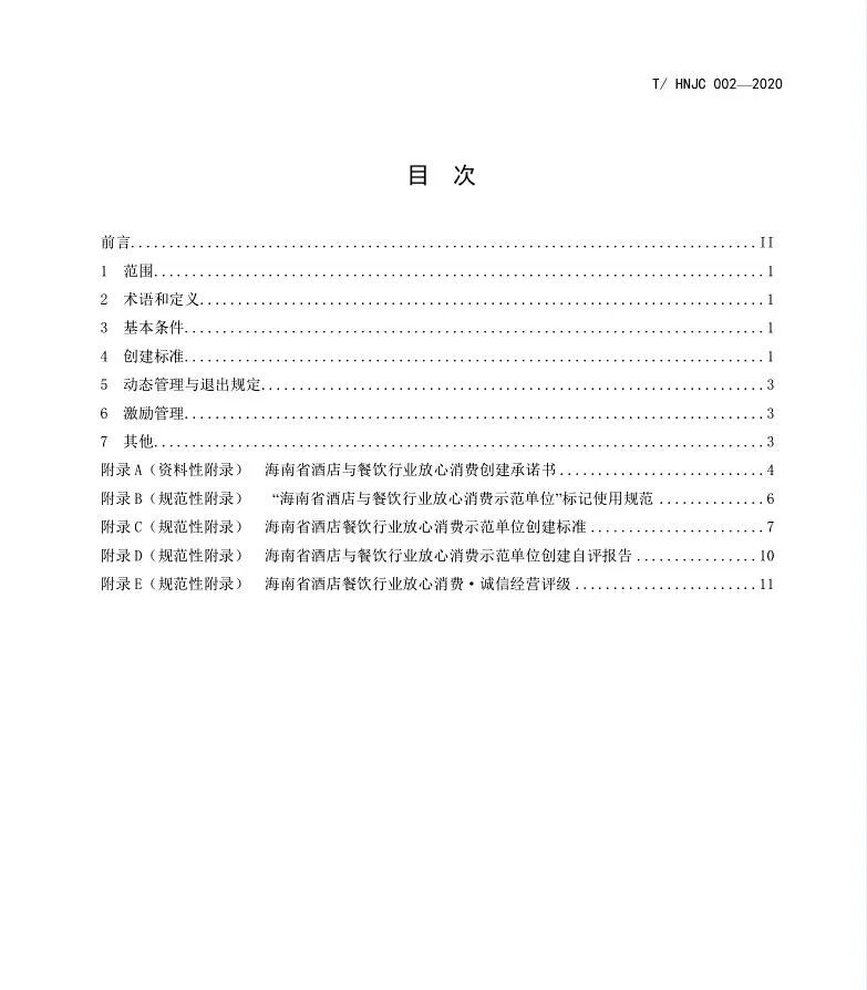 2020年6月22日,海南省酒店与餐饮行业协会(以下简称“协会”)在全国标准信息公共服务平台正式发布《酒店餐饮行业放心消费示范单位创建标准》团体标准。