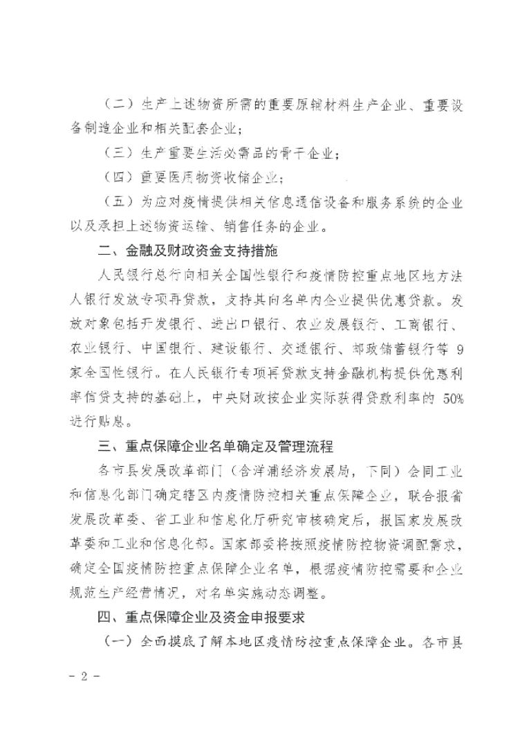 关于组织申报疫情防控重点保障企业强化资金支持的紧急通知