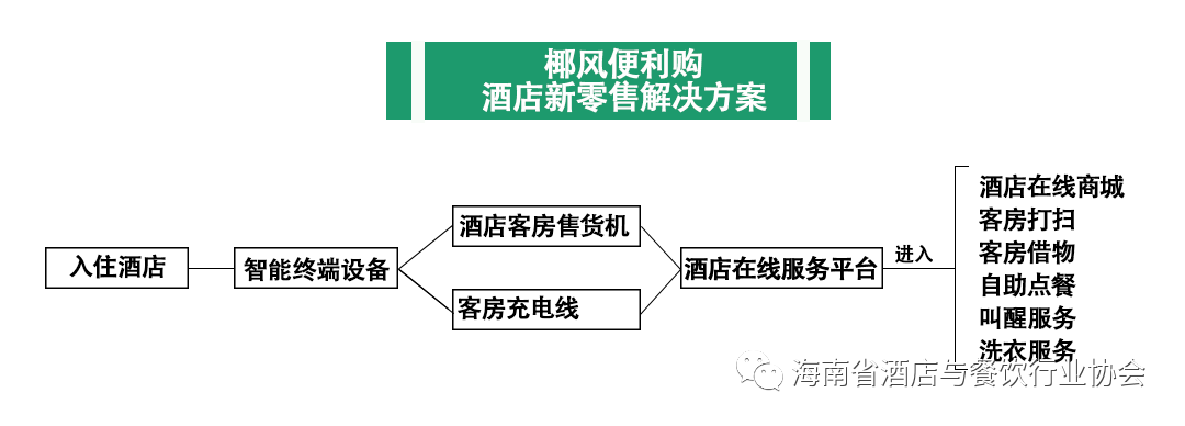 基于这个的逻辑,椰风便利购进行了一场头脑风暴,将酒店新零售这个场景的需求-剖析、解构、重构,通过“智能终端酒店售货机设备+手机充电线+酒店在线服务”成功为酒店零售打通链路,完成一整套酒店零售闭环,帮助酒店完成智能升级。