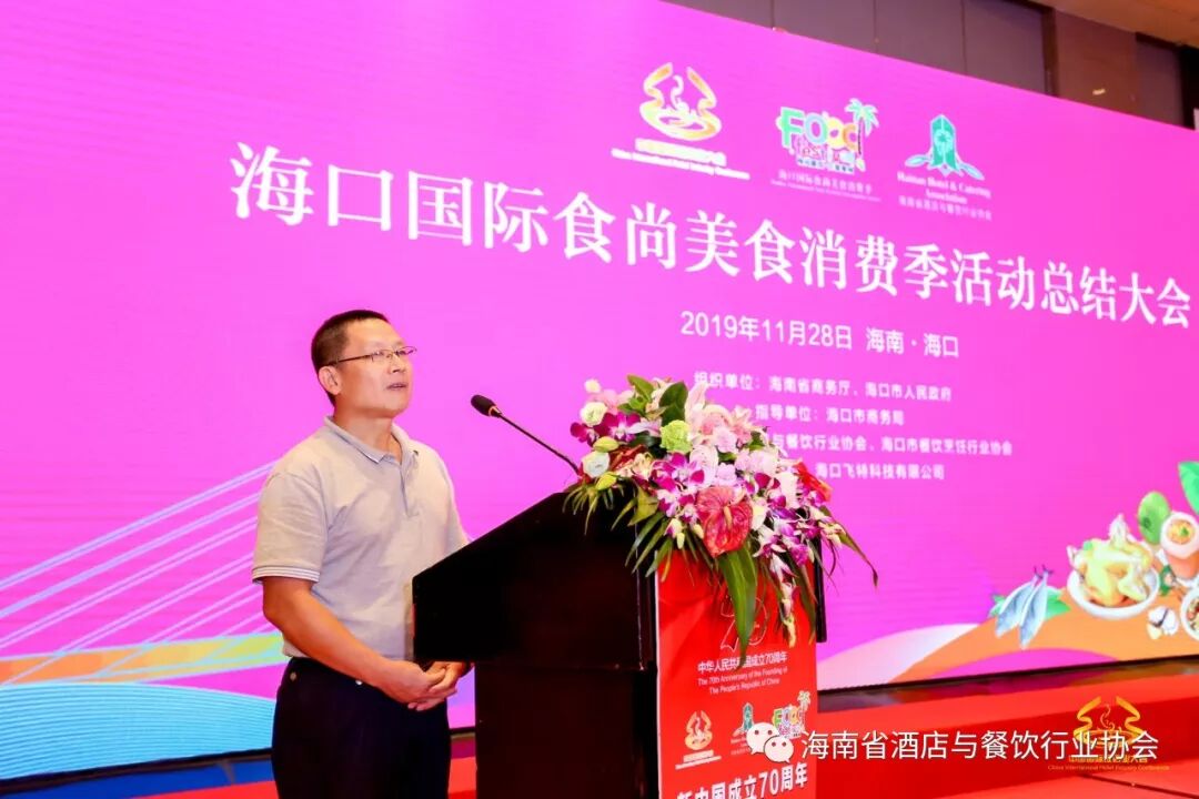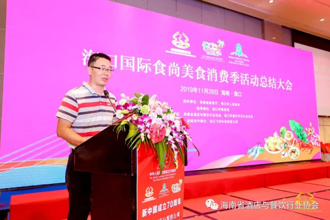 总结大会在精彩的演出中拉开序幕,海口市商务局流通科负责人赵军对活动进行总结发言并对活动的圆满落幕表示热烈祝贺,他表示本次活动是我市在酒店餐饮领域促消费、扩内需的一次积极探索,也是促进海口市消费转型跨越发展的重要举措,并从活动背景、活动概况、活动成效等方面对本次海口食尚美食消费季进行总结。