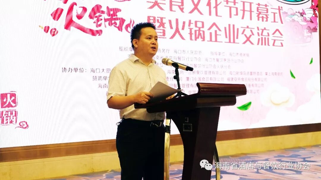 8月29日,由海南省商务厅、海口市人民政府组织,海口市商务局指导,海南省酒店与餐饮行业协会、海口市餐饮烹饪协会主办,海南省酒店与餐饮行业协会火锅分会承办的海口国际食尚美食消费季活动之一火锅美食文化节拉开帷幕。省人大常委会原秘书长、省酒餐协名誉会长翟培基,海南省商务厅消费处处长曲福经,海口市商务局局长蔡俏,中国饭店协会副监事长、省酒餐协执行会长陈恒,省酒餐协主席团主席、省酒餐协火锅分会名誉会长、海南鼎尚一品鲜餐饮管理有限公司董事长王美,省酒餐协副会长兼秘书长陈刚,省酒餐协特邀顾问、海口飞特科技有限公司总经理张炜 ,海南省节能减排协会秘书长米志伟,特邀嘉宾、海南正生堂健康产业集团有限公司董事长欧一忠,重点火锅餐饮企业相关负责人以及社会各界来宾、消费者代表、媒体负责人200多人出席开幕式。