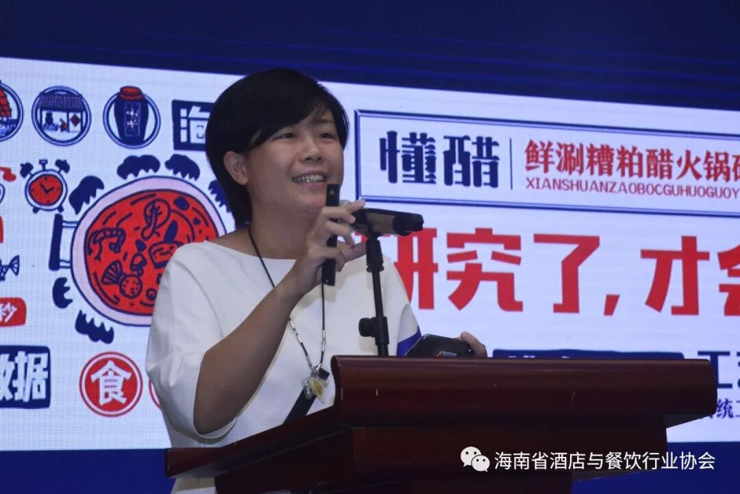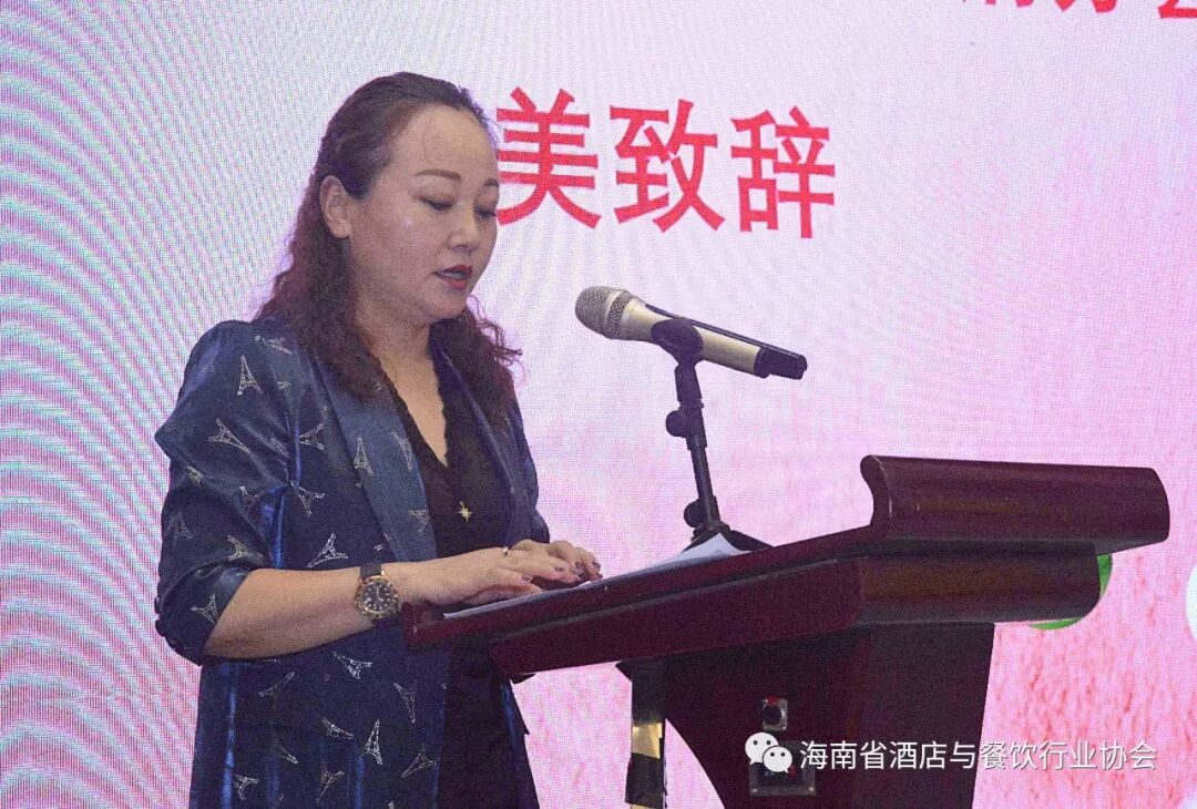 省酒餐协主席团主席、省酒餐协火锅分会名誉会长、海南鼎尚一品鲜餐饮管理有限公司董事长王美致辞