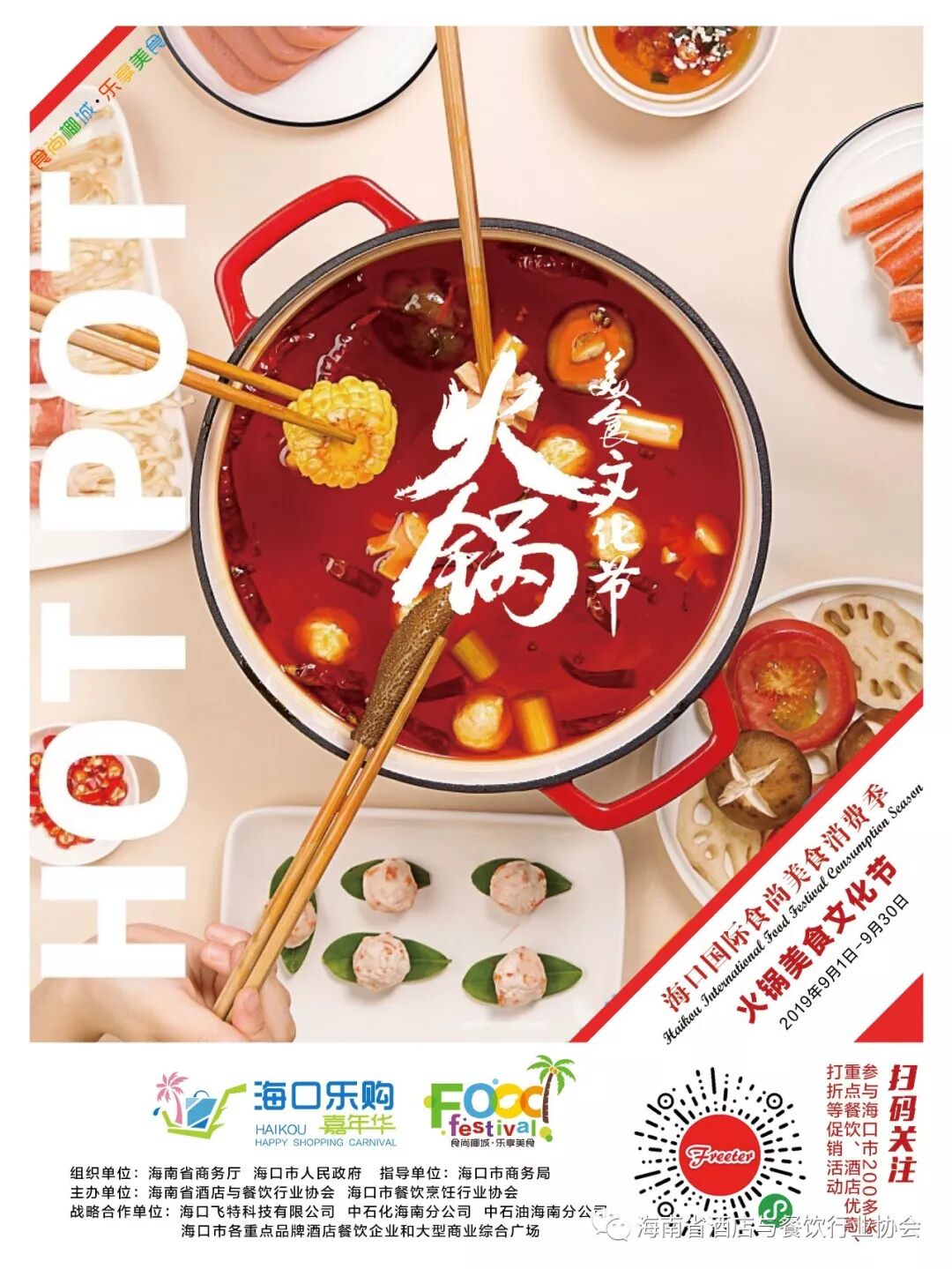 据了解,本次火锅美食文化节是根据海南省人民政府、海口市人民政府关于扩大消费拉动内需的部署要求和2019年拉动促消费活动安排的海口食尚美食消费季一个重要组成部分,也是我市促销费、扩内需在火锅餐饮领域的一次积极探索,更是我市培育、巩固“国际美食之都”的一次积极尝试。活动将持续到9月29日,期间联合“飞特Freeter(小岛生活市集)”开展折扣代金券、双人火锅套餐、多人优惠套餐等优惠力度大、形式多样的线上促销。为期一个月的火锅美食文化节已有海南鼎尚一品鲜餐饮管理有限公司、川妹火锅、重庆不出名火锅、海口炳霖猪肚包鸡连锁、海口龙华一锅匠火锅店、启丰二号海鲜超市餐厅、海口龙华上邦百汇城筷子火锅店、毛儿火锅、海南万众三一餐饮管理有限公司(国贸小郡肝)、新鸡地、旷渝火锅、日月德庄火锅、暧尚火锅、海南科滔餐饮管理有限公司、海口马路边边串串香火锅、海口小郡肝串串香火锅、人人捞火锅、渝人码头火锅、巴蜀大将、海口喜久火锅、懂醋鲜涮糟粕醋火锅、大龙翻印、祥和盛老北京火锅、海南金爵王朝餐饮管理有限公司、捞友记、青蔓泰式火锅、班花麻辣烫等45家火锅餐饮企业共80余家门店参与,各企业将“以火锅会友”,凝心聚力做好火锅文化在海口的推广,为市民游客推出热销火锅菜品,不断地提升服务品质,共同将本次火锅文化美食节办成一场特色鲜明的火锅美食消费盛宴,丰富海口“国际美食之都”内涵,服务国际旅游消费中心建设。