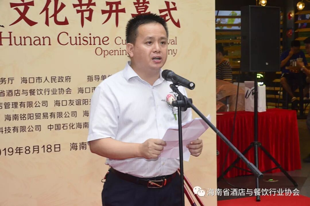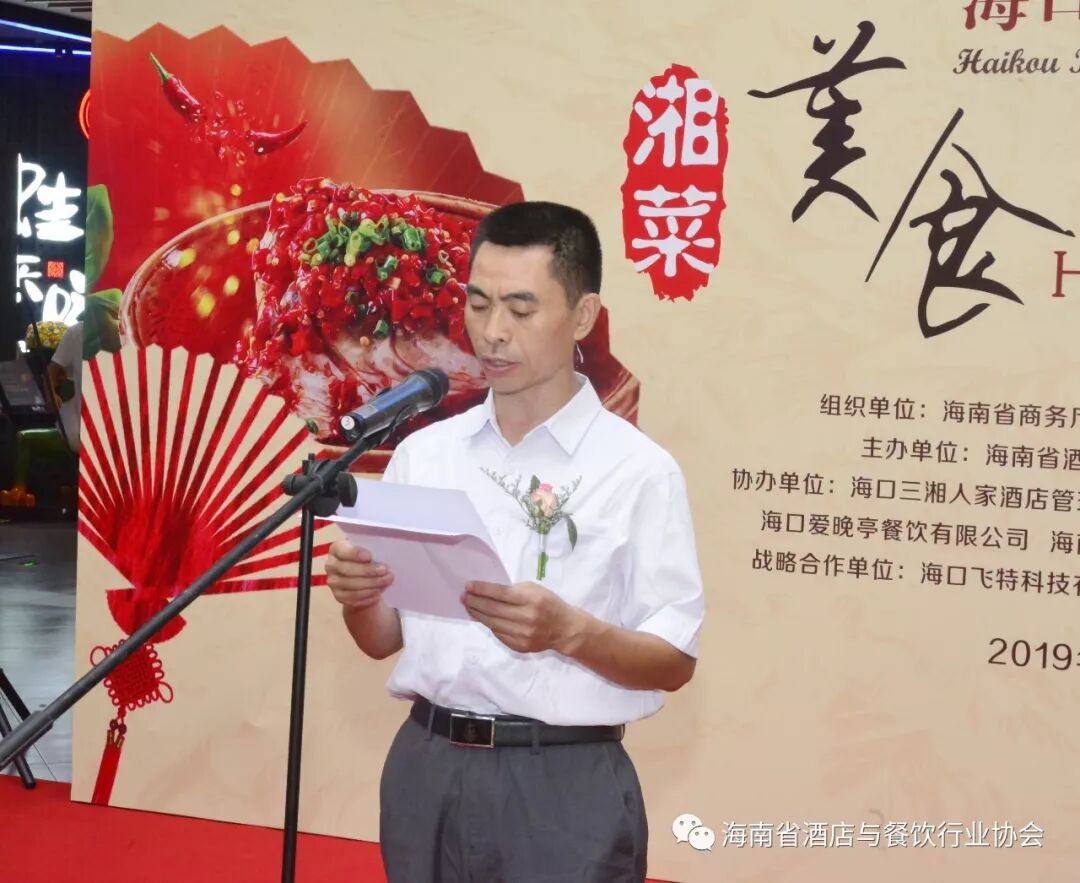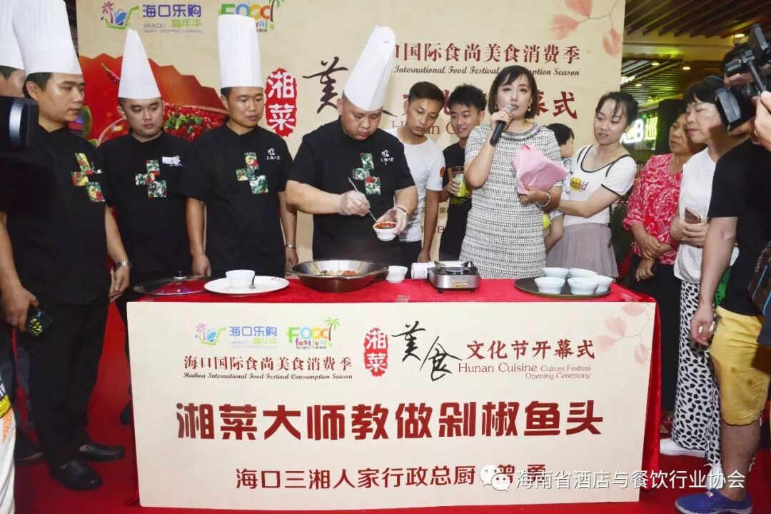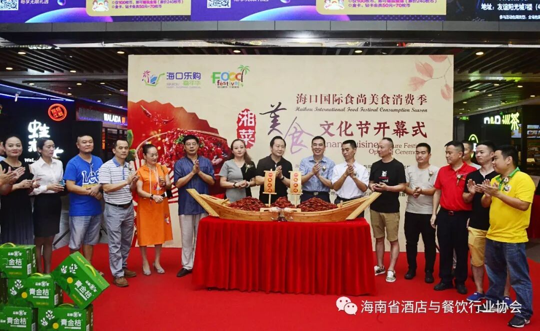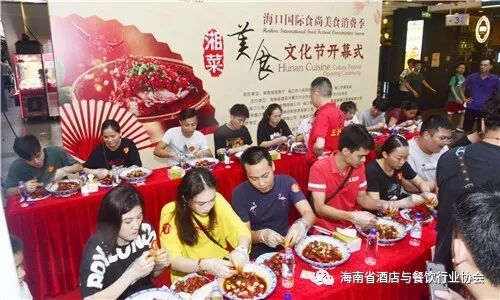 8月18日,由海南省商务厅、海口市人民政府组织,海口市商务局指导,海南省酒店与餐饮行业协会、海口市餐饮烹饪协会主办的海口国际食尚美食消费季活动之一湘菜美食文化节拉开帷幕。海南省商务厅消费处调研员谢国安,海口市商务局流通处主任黄建国,中国饭店协会副监事长、海南省酒店与餐饮行业协会执行会长陈恒,海南省酒店与餐饮行业协会主席团主席、海口锦晟酒店用品副食品批发市场总经理叶桂平,海南省酒店与餐饮行业协会副会长海南老谭味道餐饮有限公司董事长谭清明,海南省酒店与餐饮行业协会副会长兼秘书长陈刚,海南省酒店与餐饮行业协会特邀顾问、海口飞特科技有限公司总经理张炜,海口友谊阳光城营运部经理刘丽君,重点湘菜企业相关负责人以及社会各界来宾、消费者代表、媒体负责人200多人出席开幕式。