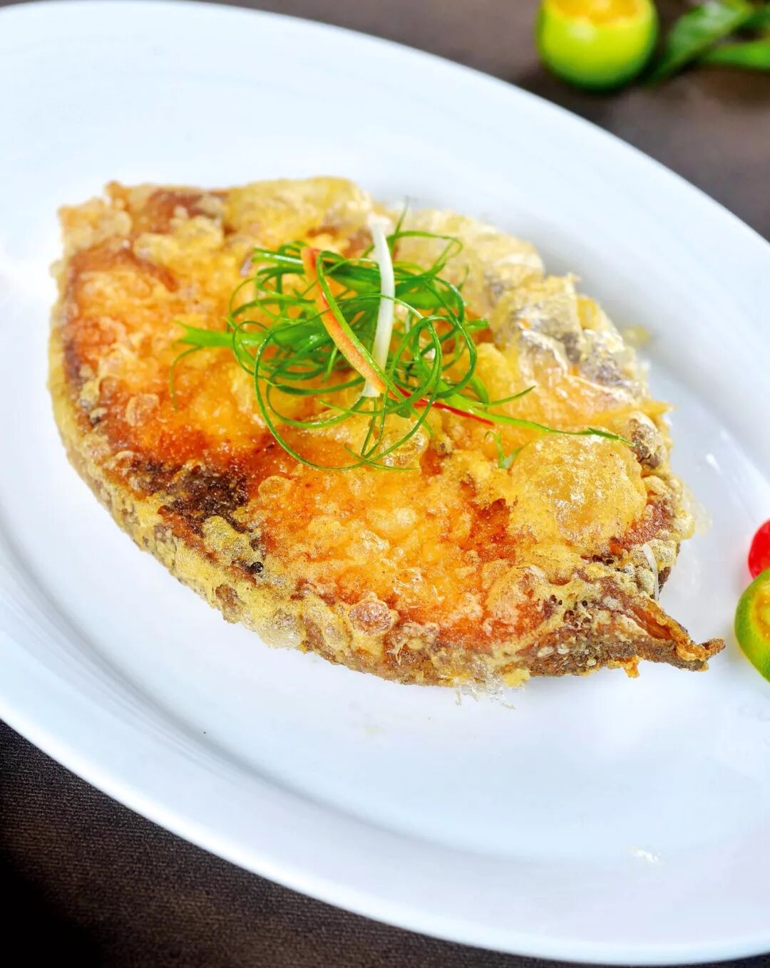 海甘鱼是海南人喜爱的一道海产,低脂肪、含有优质的蛋白质,营养极佳,肉质细嫩味道鲜美。香煎至表面金黄,内里柔细纤维分明,脂香而不腻,风味极佳。