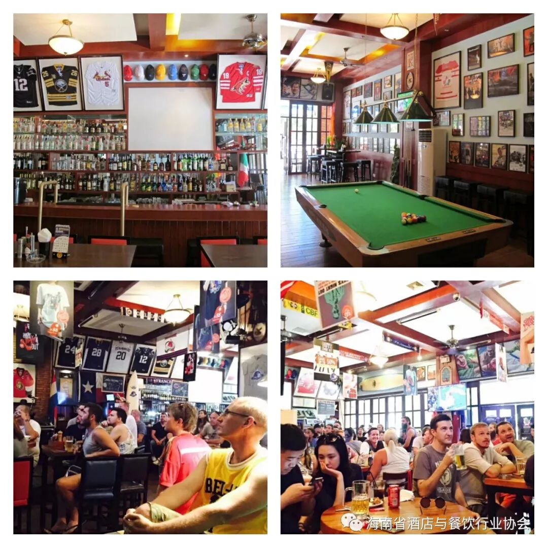 张志刚早年是在上海马龙美式餐厅担任行政总厨,因而海豚美式餐厅酒吧成为他打入三亚餐饮市场的标志。沿袭了北美传统餐厅与酒吧的一贯风格,高脚凳搭配纯木方桌,方便“拼桌”;体育是海豚的ZUI大主题,随处可见各国家俱乐部的队旗,还有美式桌球、飞镖游戏、桌上足球等等;敞开型的门头,让食客们无论身处在店内还是室外都能感受到餐吧欢乐的氛围。