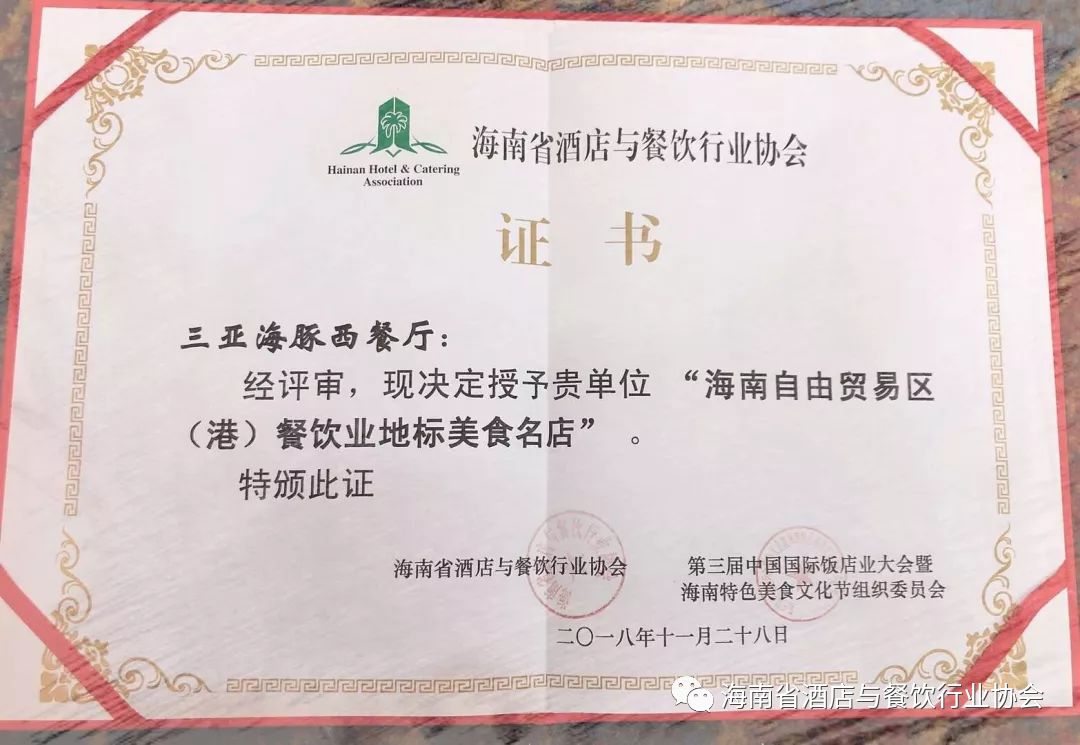 2018年被评为“中国海南餐饮十大贡献人物”