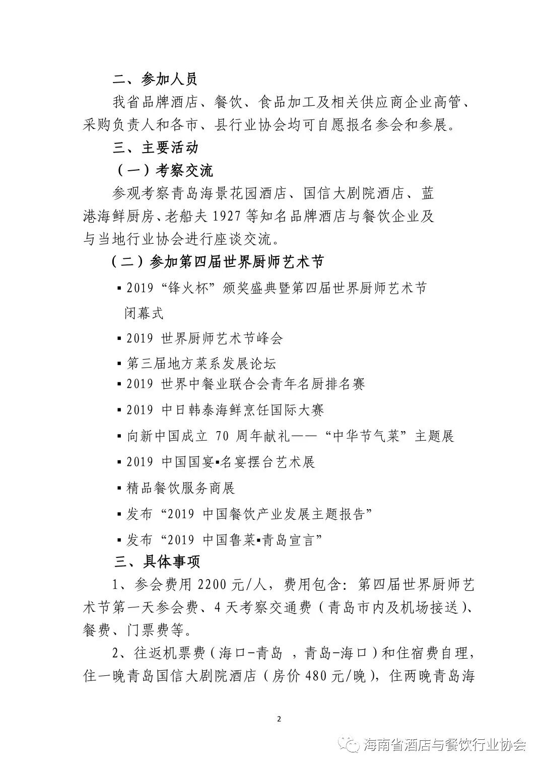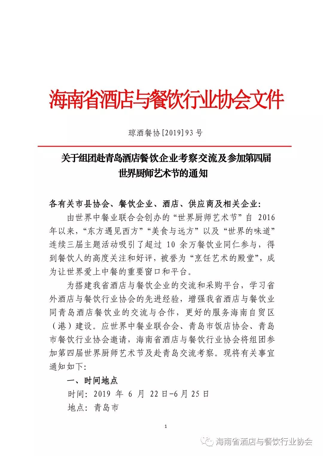 关于组团赴青岛酒店餐饮企业考察交流及参加第四届世界厨师艺术节的通知