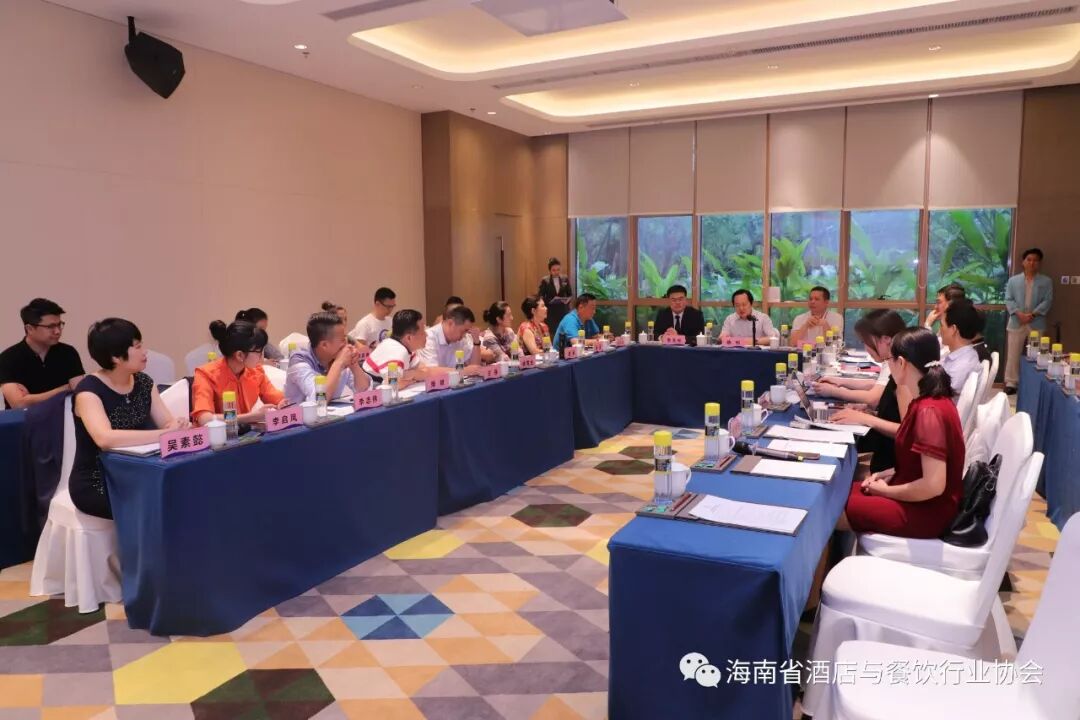 5月7日下午,由海南省酒店与餐饮行业协会主办,省酒餐协国内自主品牌酒店工作委员会、海南蓝海钧华大饭店承办的琼北地区部分国内自主品牌酒店总经理交流会在蓝海钧华大饭店召开。中国饭店协会副监事长、海南省酒餐协执行会长陈恒,省酒餐协主席团主席:海南佳捷酒店管理有限公司董事长王东云(省酒餐协国内自主品牌酒店工作委员会主任)、海口五指山国际酒店总经理卢文弟、海南金海酒店用品城发展有限公司董事长黄文奕,海南鑫源温泉大酒店总经理薛学斌(国内自主品牌酒店工作委员会高级顾问),省酒餐协副会长:海南蓝海钧华大饭店总经理李玉柱、海南龙泉集团副总裁程蓓(省酒餐协国内自主品牌酒店工作委员会执行主任)、海南大酒店总经理景丽、海南亚泰温泉酒店有限公司总经理胡慧贤(国内自主品牌酒店工作委员会副主任)、海南腾鹏大酒店总经理林育生,海口黄金海景大酒店总经理王强(国内自主品牌酒店工作委员会副主任)、海南康年皇冠酒店总经理陈斌、荷泰投资发展有限公司运营中心总经理李泱燃(国内自主品牌酒店工作委员会秘书长)、三亚中亚国际大酒店总经理陈海坚、澄迈景廷海景酒店总经理李启凤,海南大学后勤处处长助理、海南大学中日友好交流中心总经理助理张琼瑛近30余人参会。