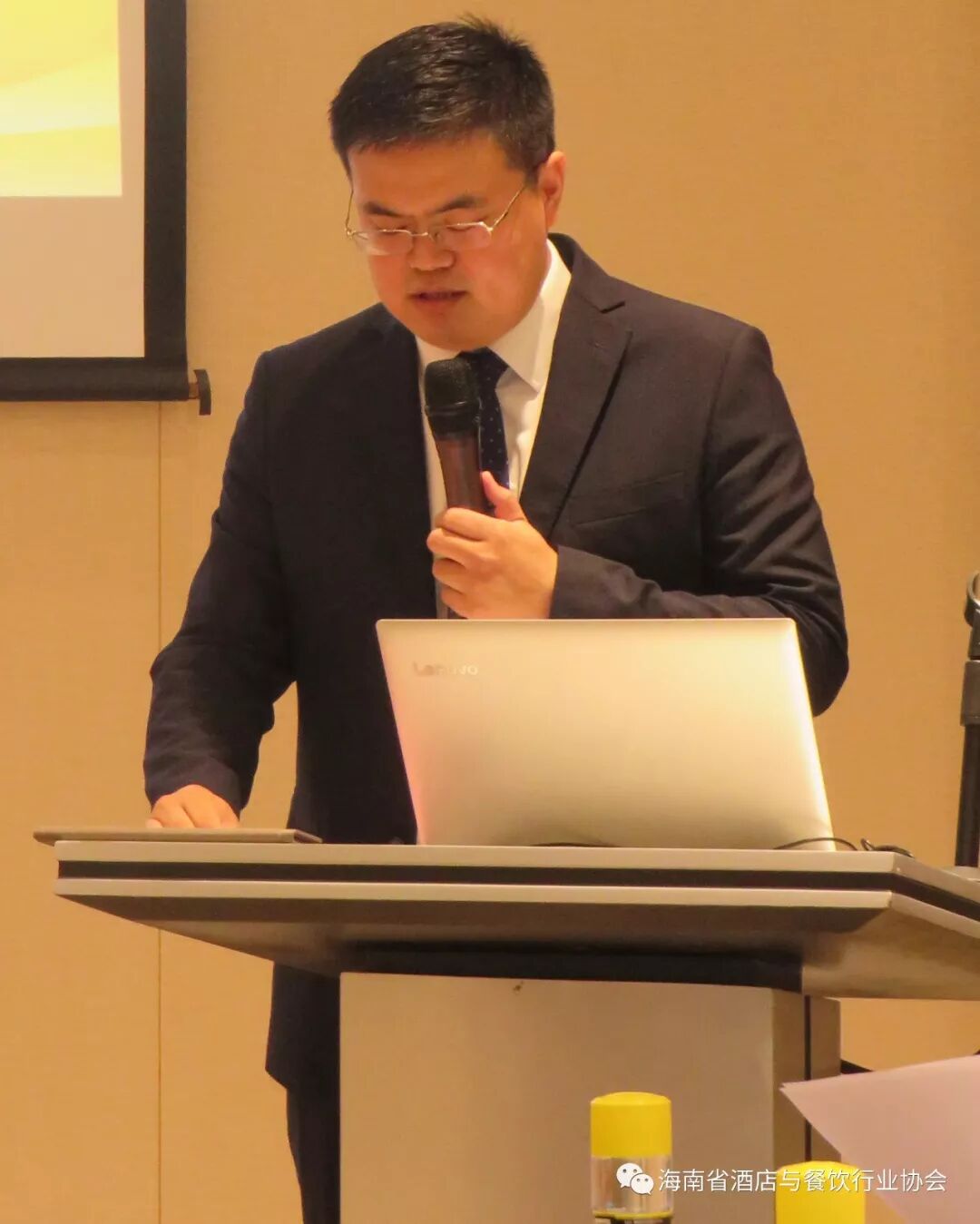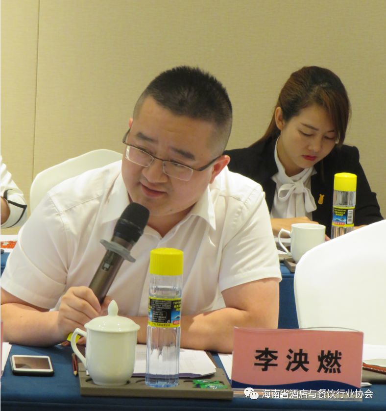 荷泰投资发展有限公司运营中心总经理李泱燃在会上分析海南酒店市场,提出要调整营销方向,抓住客户需求向亲子市场靠拢。他也表示对智能酒店的发展要配合人工服务,让服务更有“温度”,此外李泱燃总经理还提议行业协会要为行业标准化发展提供更多的支持。