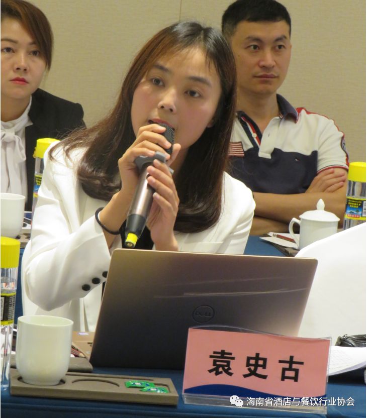 海南蓝海钧华大饭店李玉柱总经理做首要发言。他给大家分析了山东地区与海南地区酒店发展的的差异性,并以蓝海集团为例介绍了酒店在生态软件园中为迎合区域市场需求配套智能酒店设施,提升顾客体验感的同时再进而节约员工成本。此外,李玉柱总经理强调企业管理中服务细节与安全生产的重要性,应融入企业文化,便于更好地落实到实际管理中。
