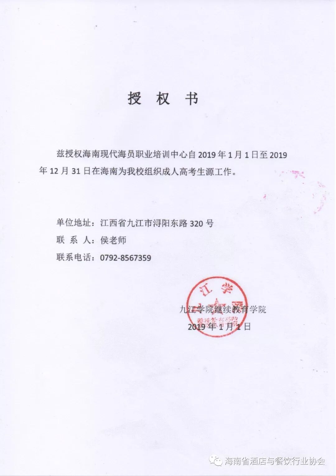 海南省酒店与餐饮行业2019年“教育扶贫·助学扶智-阳光工程”九江学院成人高考招生简章