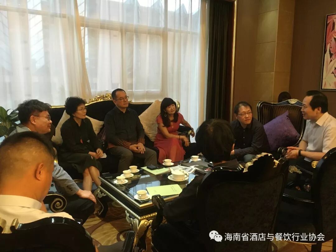 4月11日,由世界中餐业联合会牵头组织,新加坡特许经营协会副会长周家萌任组长,中国社会科学院财经战略研究院餐饮研究中心主任博士赵京桥任副组长,韩国中餐联盟会长、国际中餐烹饪大师、米其林烹饪大师吕敬来,香港餐饮联业协会副主席李晓莉,华中师范大学国家文化产业研究中心管理学博士程小敏,海南省产业经济研究院副院长、海南省酒店与餐饮行业协会执行会长、海口市餐饮烹饪行业协会理事长陈恒,世界中餐业联合会秘书长尚哈玲等组成的专家组莅临海口开展为期5天的实地考察与交流。海南省服务贸易促进局副局长姬国辉、海口市政府副秘书长杜欣能、海口市商务局党组书记董孟清、海口市商务局总经济师陈量子及省酒餐协执行会长陈恒、秘书长陈刚一同在海口华诚汇酒店会见专家组一行。