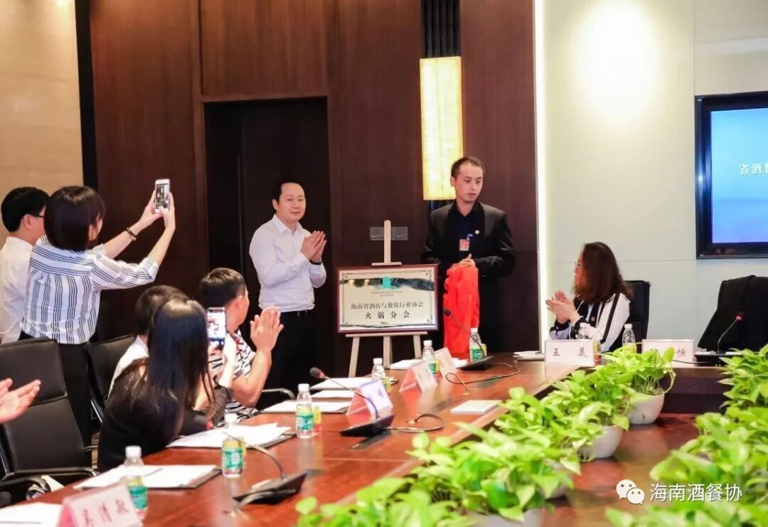 并选举省酒餐协主席团主席、海口金辉豪商业管理有限公司总经理王豪为火锅分会第一任会长,海口滨江石山乳羊第一家总经理王位财、小天鹅火锅总经理刘骁等10位行业代表为常务副会长,海口龙华四季渝园火锅店总经理许琨、海口美兰邓记莽子老火锅店店长齐丽丽等19位行业代表为副会长,海南联合创业投资管理有限公司总经理向鹏为顾委会主任,海南翔力文化发展有限公司总经理张波为秘书长。聘请省酒餐协主席团主席海南鼎尚一品鲜餐饮管理有限公司董事长王美、省酒餐协主席团主席海南炳霖餐饮投资管理有限公司总经理朱炳霖等5位行业精英为名誉会长。