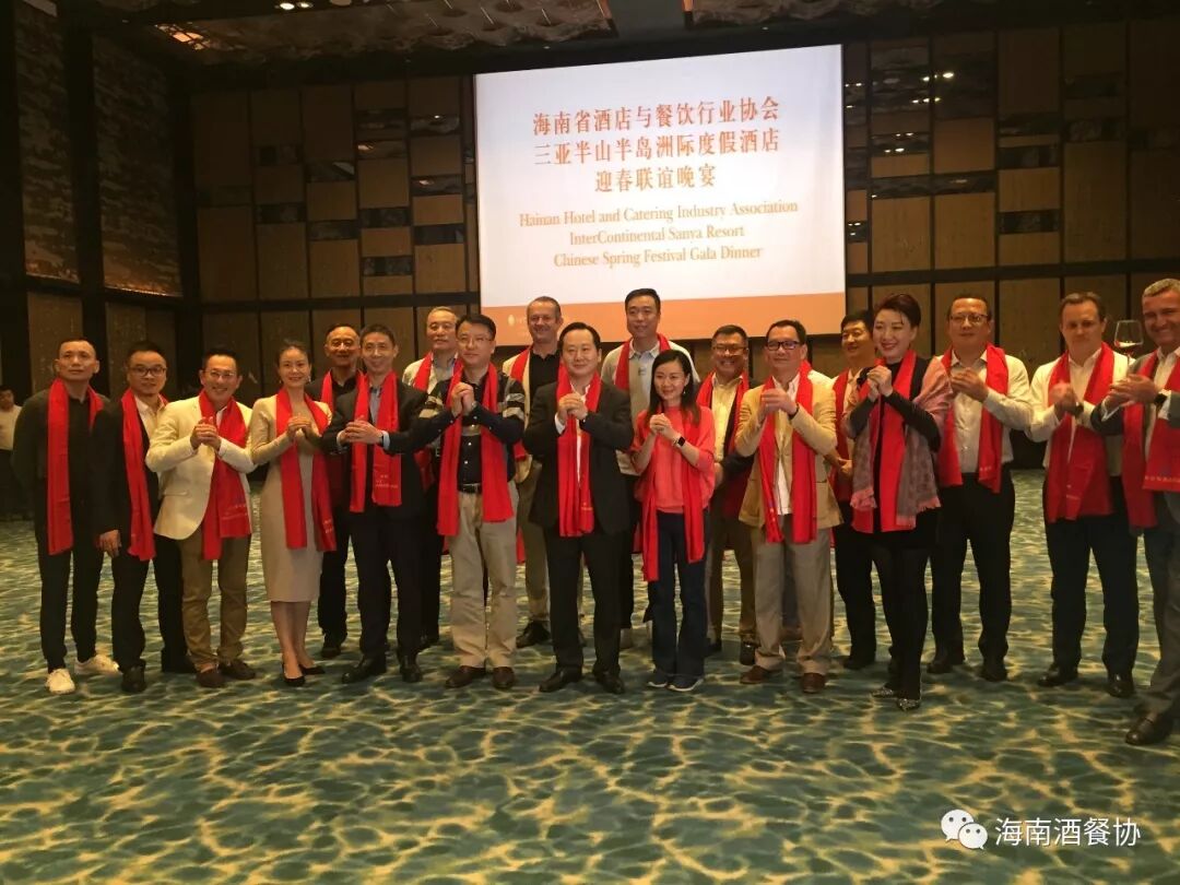 2019年1月26日晚上,省酒餐协组织三亚地区部分酒店总经理及业主代表在三亚半山半岛洲际度假酒店进行迎春联谊晚宴,省酒餐协执行会长陈恒及三亚半山半岛洲际度假酒店业主代表苗健等二十多家国际国内品牌酒店总经理(含外籍总经理)和业主代表参加。陆续到场的总经理和业主代表见面时互致问候,并交流各自酒店的经营情况。