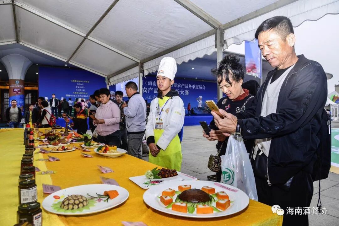 本次大赛分为专业赛与家庭赛。来自海口、三亚、万宁、文昌等十多个市县的200余名厨师骨干及50余名大众选手利用海口石山镇特色的火山壅羊、美安小黄牛、石山黑豆腐等多种农产品烹制精品美食。