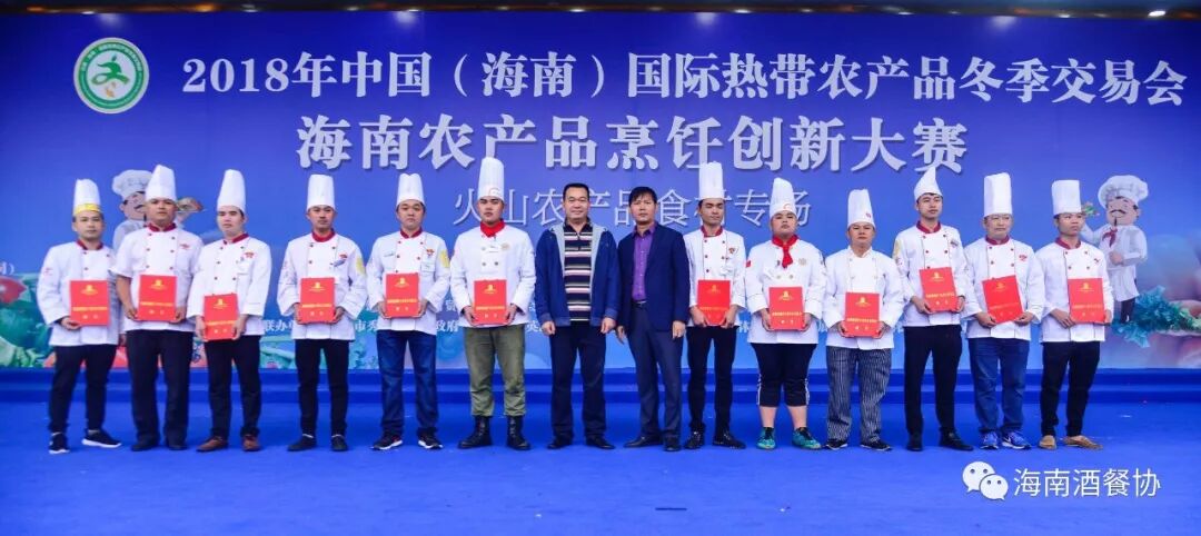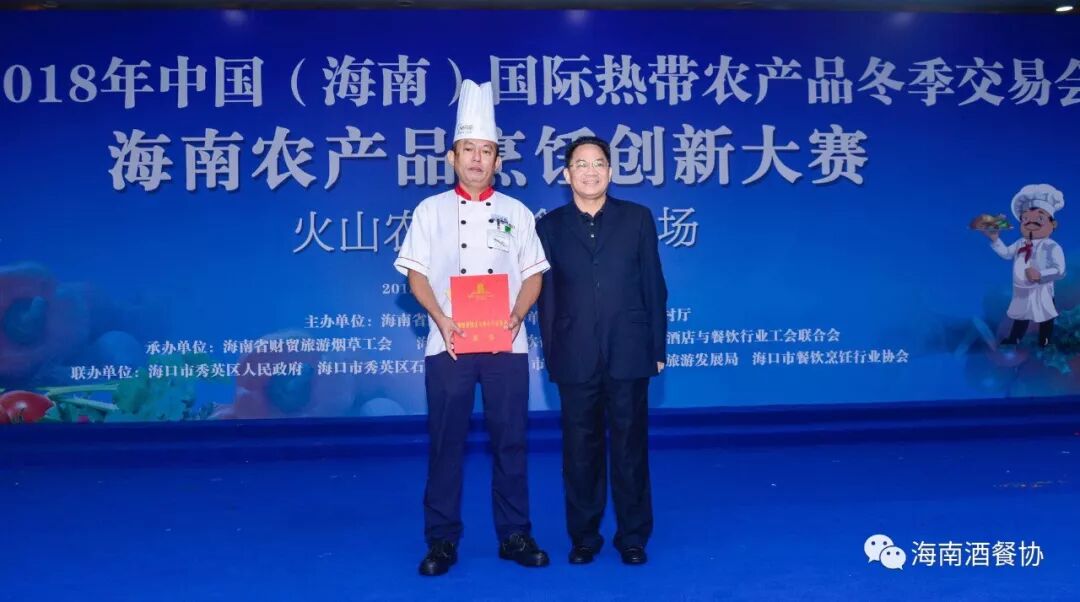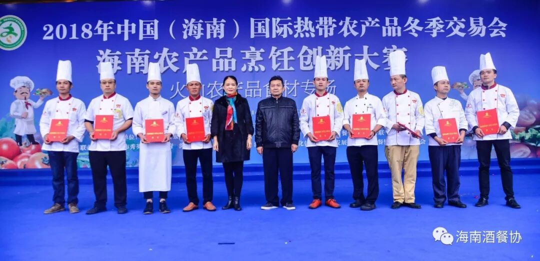 12月14日,作为2018冬交会重点活动之一的“海南农产品烹饪创新大赛暨海口火山食材菜品研发成果展示推介活动”及“第二届家庭厨艺大赛”在海南国际会展中心圆满落幕。省委书记刘赐贵,省委常委、秘书长胡光辉,省委常委、海口市委书记张琦莅临现场参观大赛,省农业厅厅长许云、省商务厅厅长吕勇等有关部门领导陪同。省人大常委会副主任、省总工会主席陆志远,省总工会副主席马东旭,省商务厅副厅长姚磊,省人大常委会原秘书长、省酒餐协名誉会长翟培基,省总工会副巡视员高光辉,省服务贸易促进局副局长姬国辉,省人力资源开发局就业指导处处长刘小俊,省财贸旅游烟草工会常务副主席符有信,海口市秀英区人大常委会主任刘小琴,海口市秀英区政府副区长李铭,海口市秀英区石山镇镇长胡伟斌,中国饭店协会副会长、省酒餐协会长、海南龙泉集团董事长符史钦,中国饭店协会副监事长、省酒餐协执行会长陈恒,海口市餐饮烹饪行业协会会长、欢乐海岸美食联盟总经理林壮森,海口市秀英区文化体育与旅游发展局局长陈真权,海南广播电视台海南影视综艺频道总编室主任邓春燕,省酒餐协副会长兼秘书长陈刚,儋州市餐饮烹饪协会会长侯群英,定安县餐饮烹饪协会会长陈若杰,万宁市烹饪餐饮行业协会会长刘海涛,五指山市旅游烹饪协会副会长兼秘书长王仕君等领导出席开赛仪式。特邀嘉宾评委唐人志、庄裕伦、何子桂、李学深、吴日辉等五位中国烹饪大师为大赛专业赛作现场点评,史振儒、黄祥吉等两位琼菜名师为大赛家庭赛作现场点评。