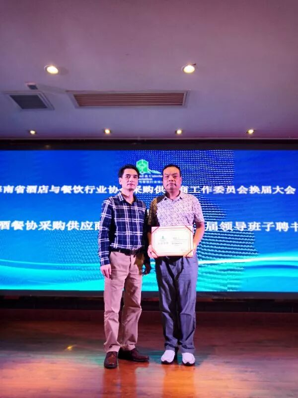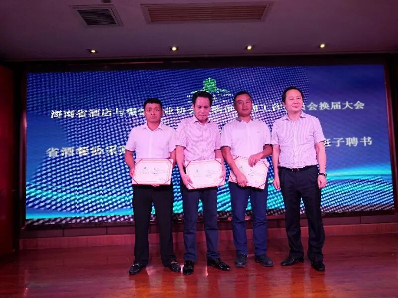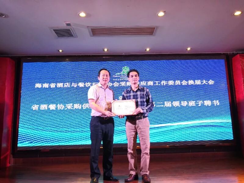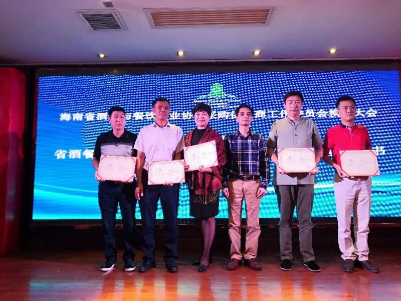 会上选举产生了省酒餐协采购供应商工作委员会第二届领导班子,海南金海酒店用品城发展有限公司董事长黄文奕当选主席,海口南北批发市场有限公司董事长、海口伟德牧业有限公司董事长胡凤桔,海南喜路来服饰有限公司总经理谭理仁,海口金辉豪商业管理公司总经理王豪,海南新意农业旅游开发有限公司总经理吕庆臣当选执行主席,海口锦晟酒店用品批发市场有限公司总经理叶桂平,海南古典家具有限公司董事长吴名光,海南博美环保水电工程有限公司总经理朱禹旭,海南茗佳茗酒店用品公司总经理李业鹏,海南久之美酒业有限公司总经理高莉,海南顺腾贸易有限公司总经理刘晋玮,海南龙健畜牧开发有限公司总经理李龙生,海南椰林饮烟食品有限公司董事长欧阳海英,青岛海尔空调电子有限公司区域总监刘达军,海南道灶堂马袅海鸭产业有限公司董事长刘胜利,海南甬和久庄文化有限公司董事长胡晓君,海南德厚昌商贸有限公司总经理王晓添,海南中东机电安装工程有限公司总经理易文广,海南鑫思卡尔商贸有限公司总经理何国文,海南皇马假日酒店管理有限公司采购总监梁伟忠,龙泉集团采购中心总经理孙彤当选副主席,海南晟发行食品贸易有限公司董事长王邦发当选副主席兼秘书长,海南金海酒店用品城发展有限公司董事长助理周升科当选执行秘书长。