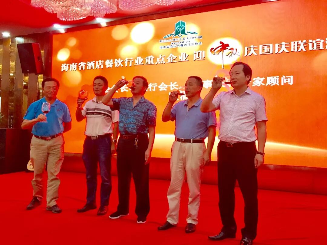 2018年9月20日晚,中秋国庆佳节来临之际,省酒店与餐饮行业协会在海口欢乐海岸美食联盟举行了“换届筹备工作会议暨行业迎中秋·庆国庆联谊酒会”。省人大常委会原秘书长、海南省绿色饭店工作委员会主任、省酒餐协二、三届理事会会长翟培基,海南省政协经济委副主任、海南产业经济研究院院长李仁君,海南省社会组织管理局局长张造友,海南省商务厅服务贸易处副处长李鹏,海南省管理现代研究会会长、海南南海经济技术研究院院长胡卫东,省酒餐协理事长、海南龙泉集团有限公司董事长符史钦,中国饭店协会副监事长、省酒餐协执行会长陈恒,省酒餐协主席团主席黄俊忠、林壮森、孙金鹏、吴晓敏、韩业礼、薛学斌、龚季弘、陈诗汉、丁兆银、王美、国晓晶、王友胜、林师锐、陈峰、谭理仁、吕庆臣、刘达军、王豪,省酒餐协副会长及行业重点企业、相关企业负责人等160余人出席。