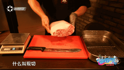 什么叫现切?就是说你点完之后,服务员会端上你钦点的肉,分量可以自己选择,然后他就会在你面前,称重并切成一块块的。