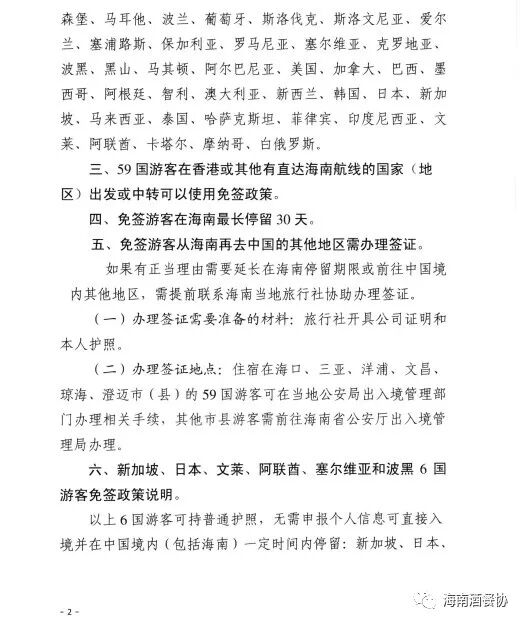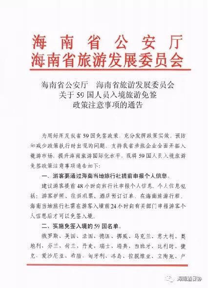 【通告】海南省公安厅 海南省旅游发展委员会关于59国人员入境旅游免签政策注意事项的通告
