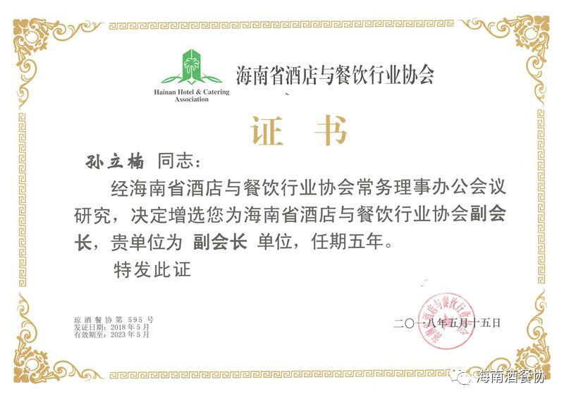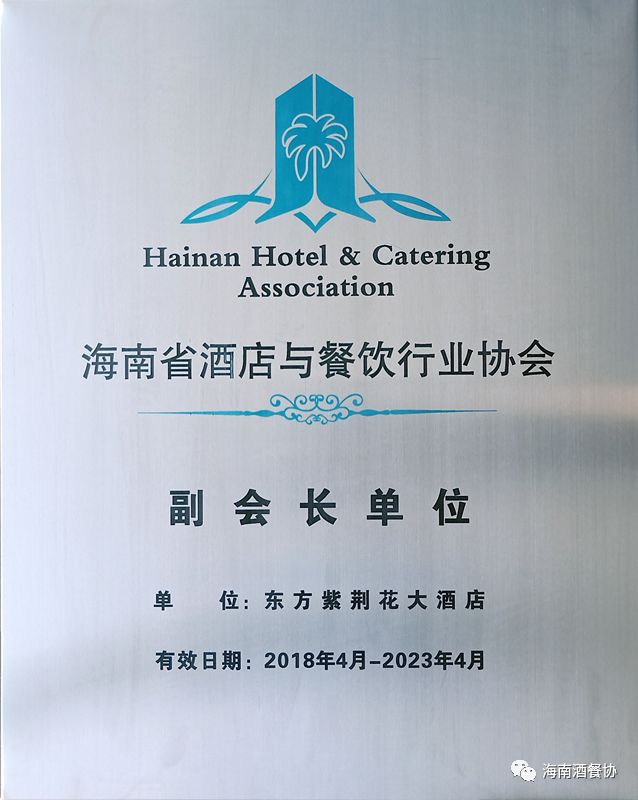 经海南省酒店与餐饮行业协会常务理事会议研究决定,将东方紫荆花大酒店增选为第三届理事会副会长单位,同时授予牌匾及证书。