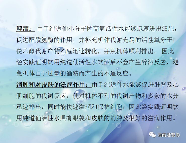 省酒餐协常务理事单位·海南仙都峰科技有限公司——纯道仙小分子团高溶氧活性饮用水