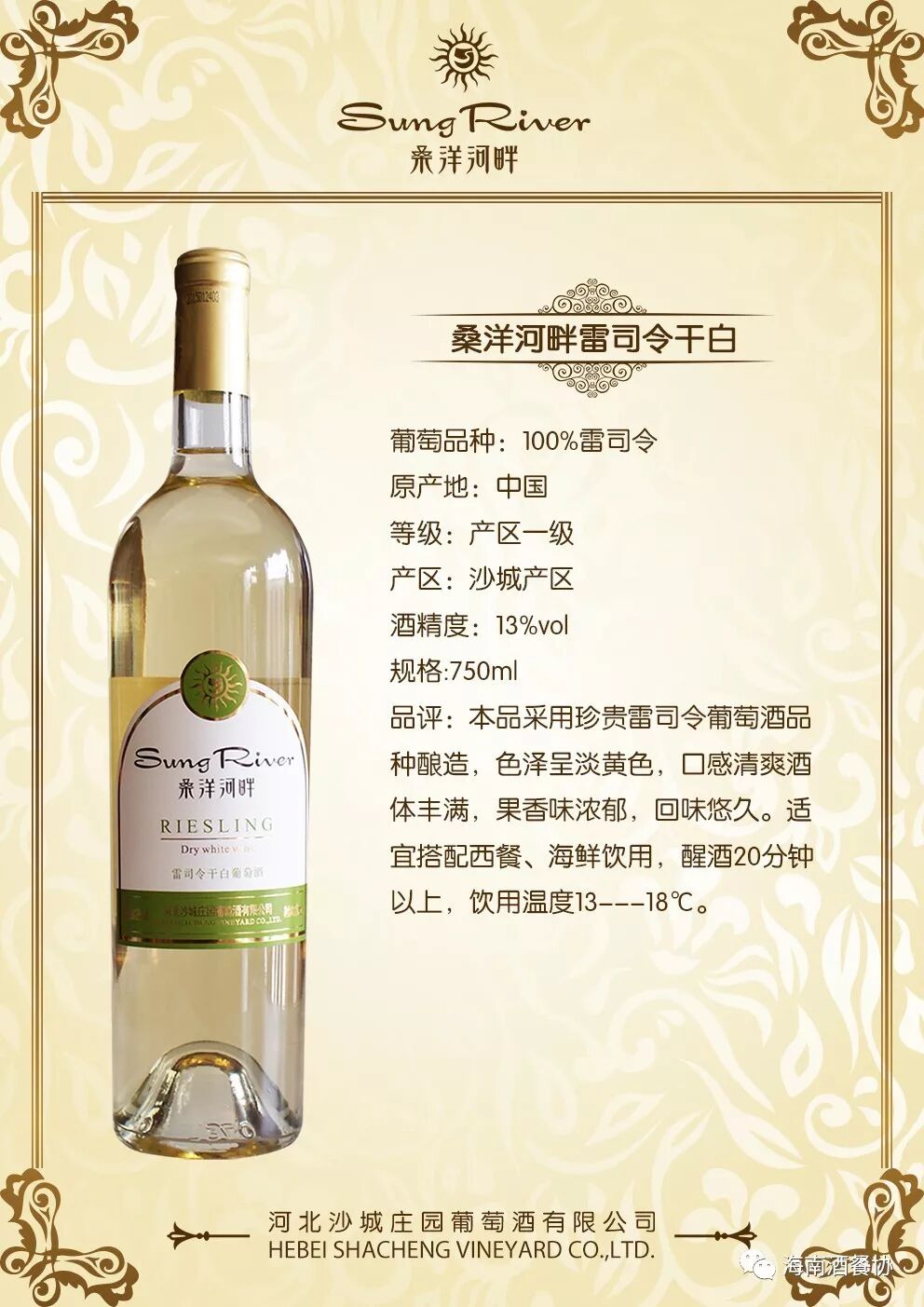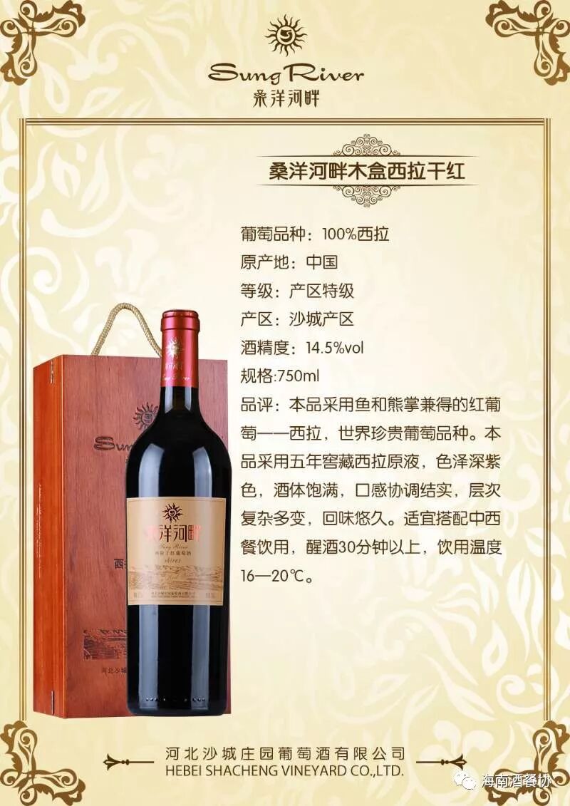 河北沙城庄园葡萄酒有限公司创建于1999年,是沙城葡萄产区唯一集葡萄种植、葡萄酒酿造、葡萄籽深加工的全产业链企业,是中国葡萄酒私酿创始与领导者、中国红酒定制第一品牌。公司拥有近万亩葡萄种植园、全套法国进口葡萄酒酿造设备。公司旗下艾伦酒庄是怀来县政府举办“中国·怀来葡萄酒节”的永久会址,子公司桑洋河畔酿酒科技发展有限公司于2015年在深市挂牌。