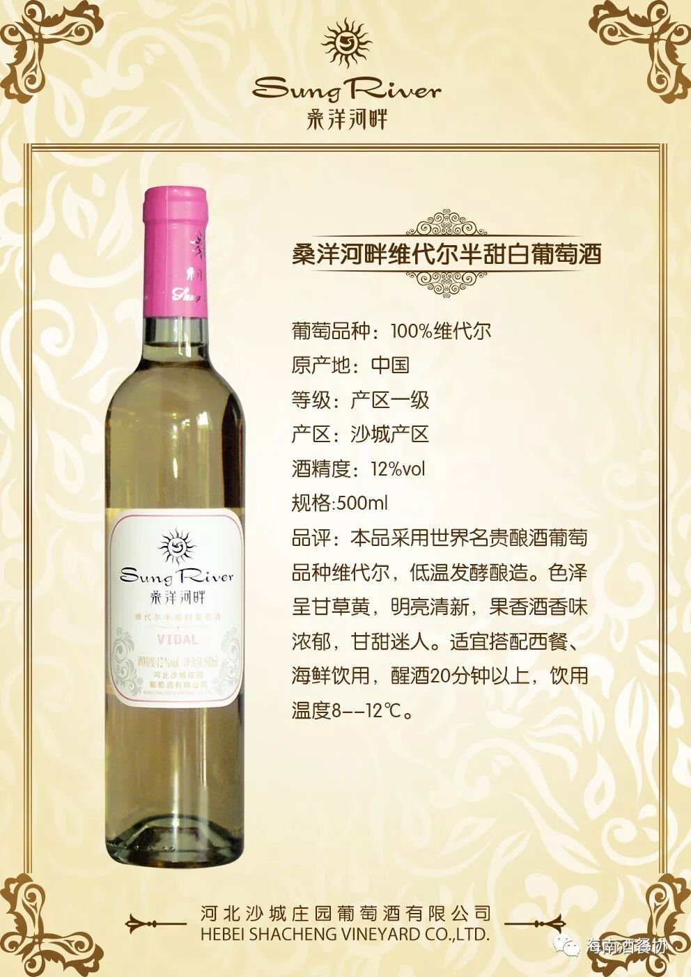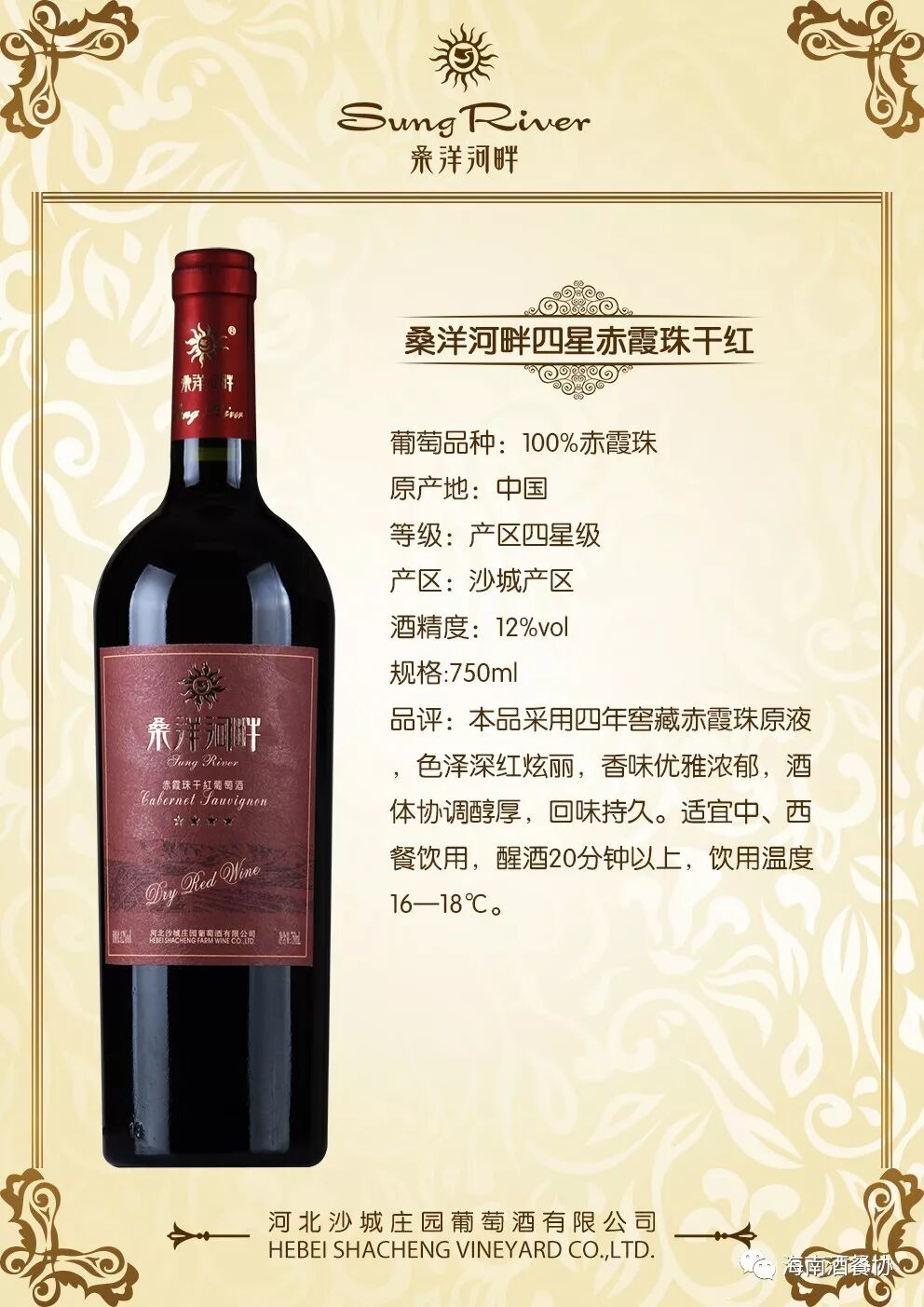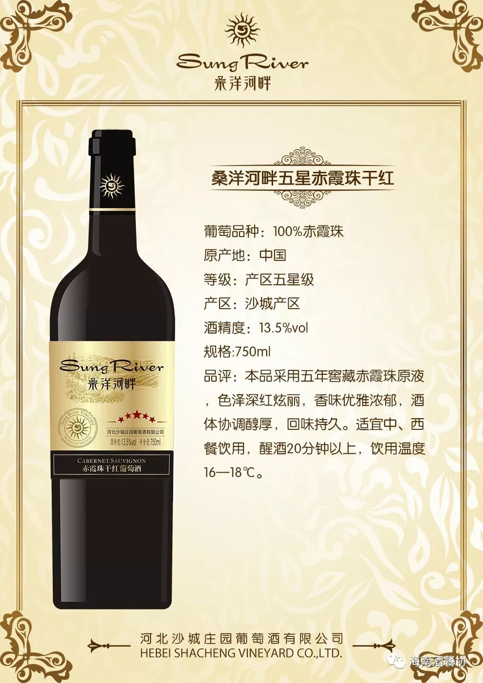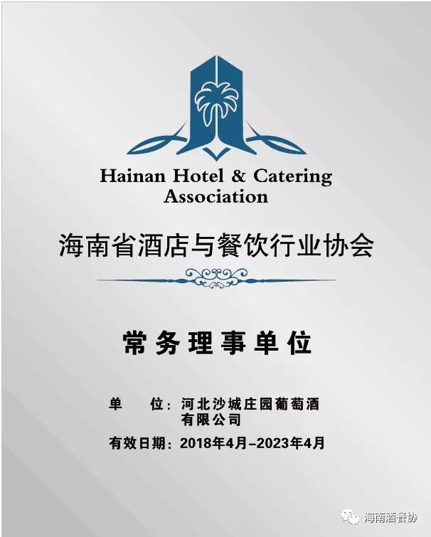 经海南省酒店与餐饮行业协会会议研究决定,将河北沙城庄园葡萄酒有限公司增选为第三届理事会常务理事单位,同时授予牌匾及证书。
